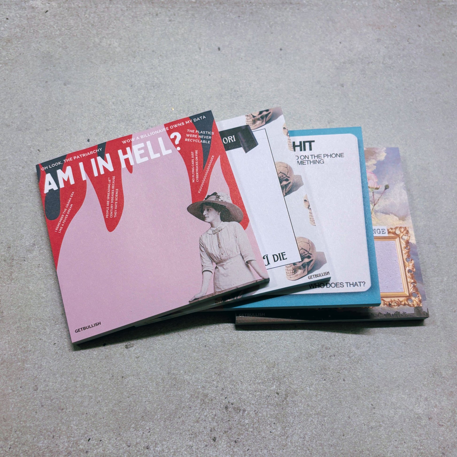 Am I In Hell? Jumbo Sticky Notes, the perfect desk accessory for anyone who has ever paused mid-Zoom meeting and thought, “Surely this is punishment for something I did in 2008.” This jumbo memo pad serves up existential dread with a side of sarcasm, featuring phrases that perfectly capture our collective spiral through late-stage capitalism.