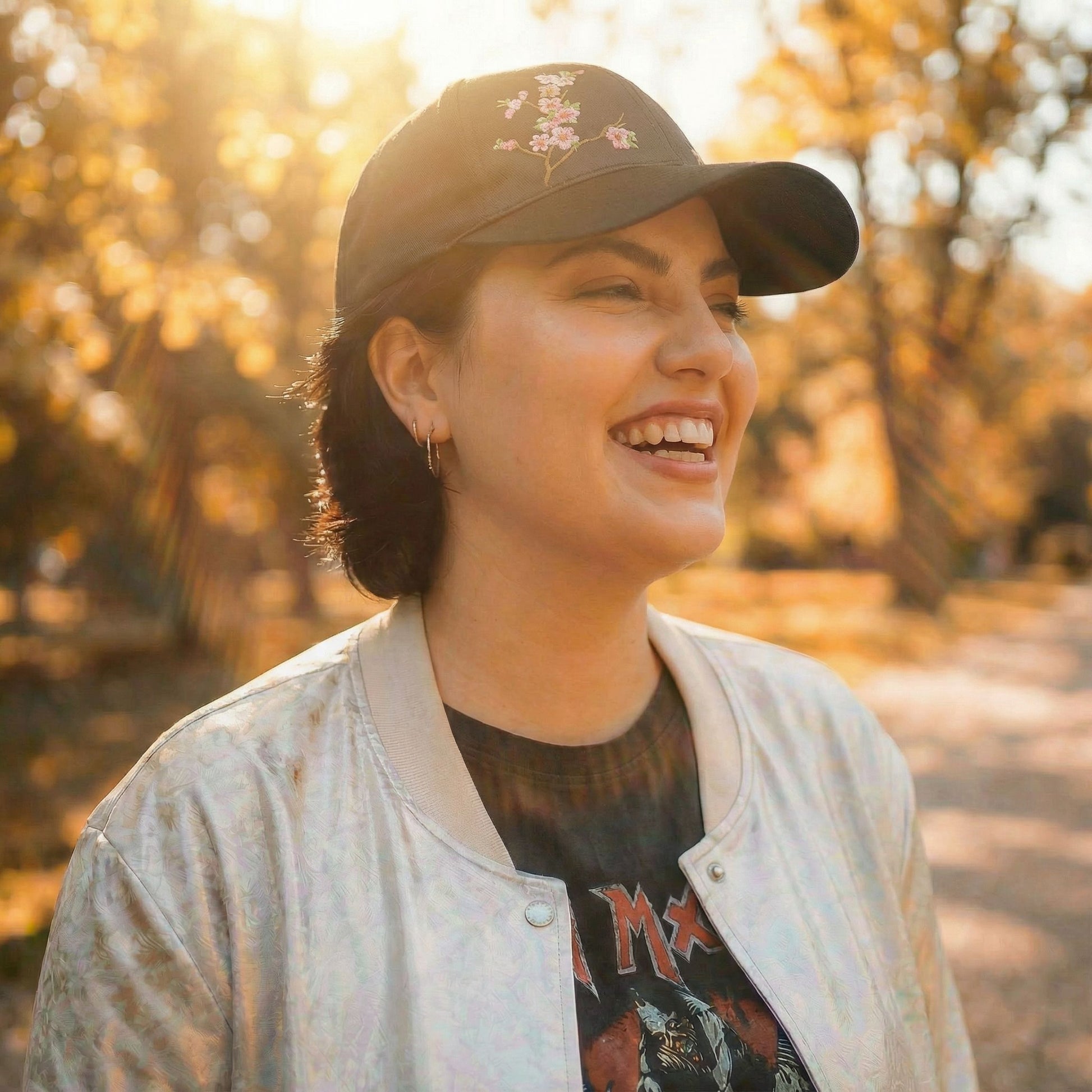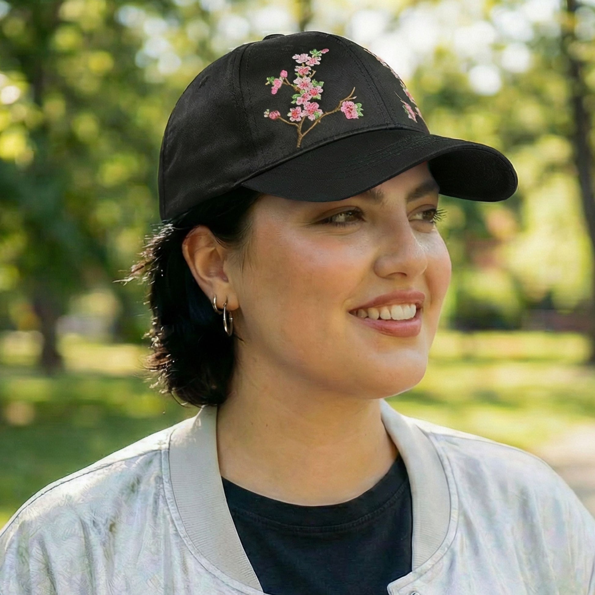 Chinese Blossom Embroidered Baseball Cap | Satin Polyester Adjustable Hat (Black, Grey, Red, White)Low stock: 6 left