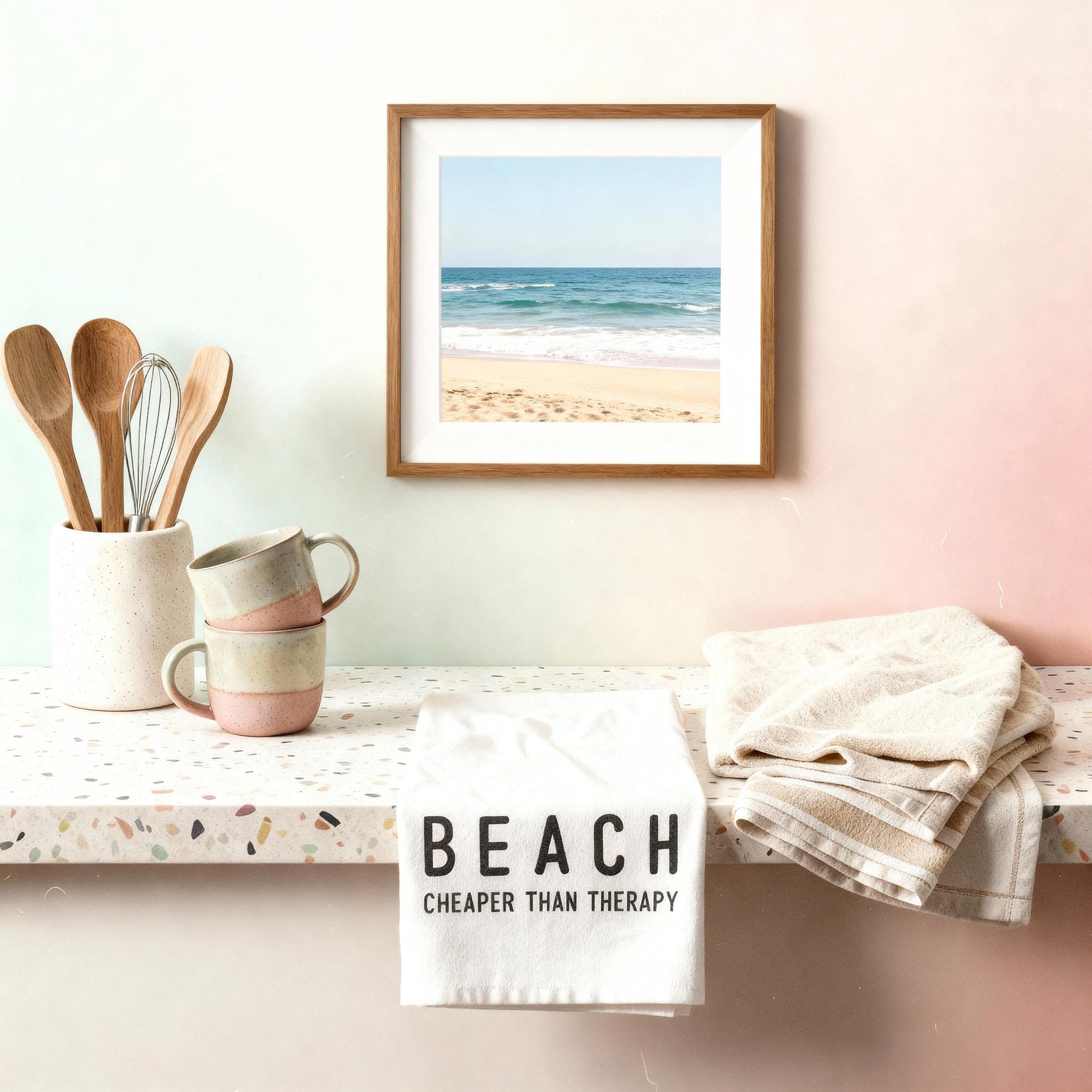 Beach Cheaper Than Therapy Thirsty Boy Dish Towel | Cotton Flour Sack Kitchen Towel | 30" x 30"Low stock: 6 left