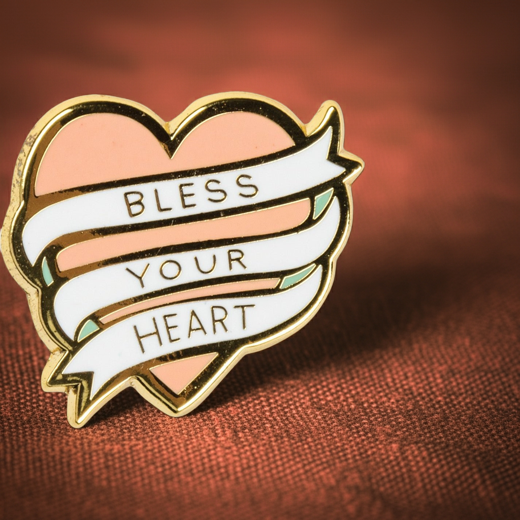 Bless Your Heart Enamel Pin in Pink on Southern-Inspired Gift Card