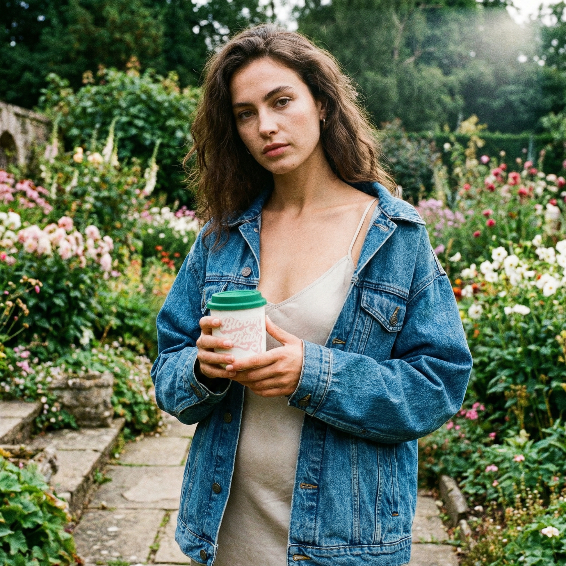 - Stay stylish and green with this adorable mug with silicone lid and sleeve