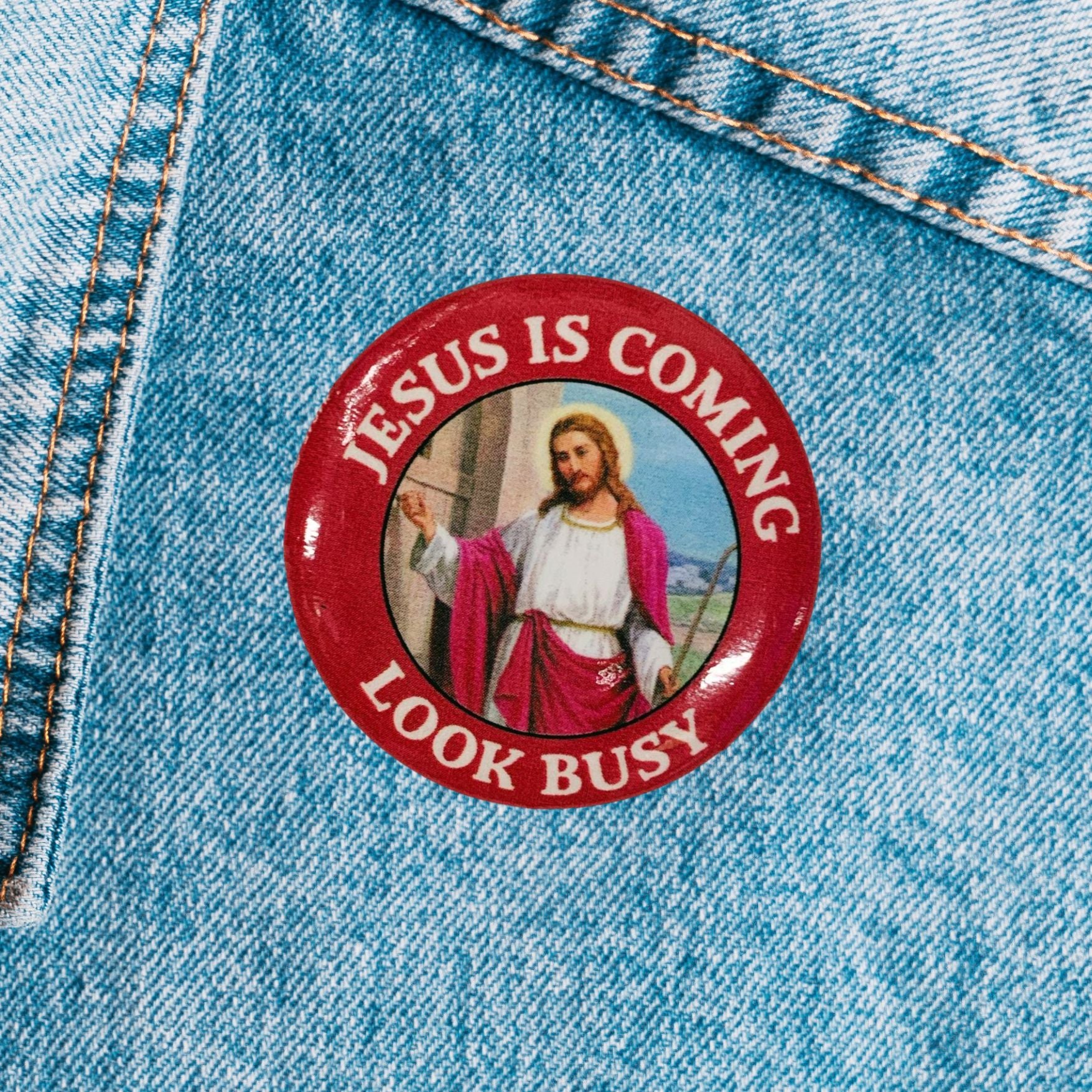 Jesus Is Coming. Look Busy Lapel Pin Button | Pinback Button Badge | 1.3"