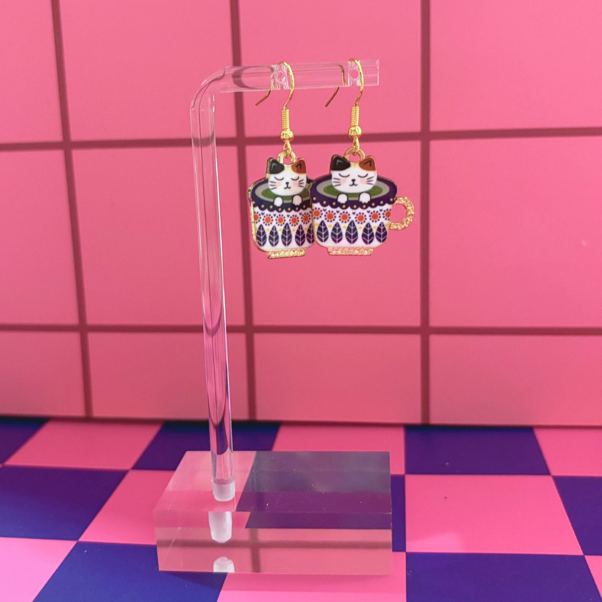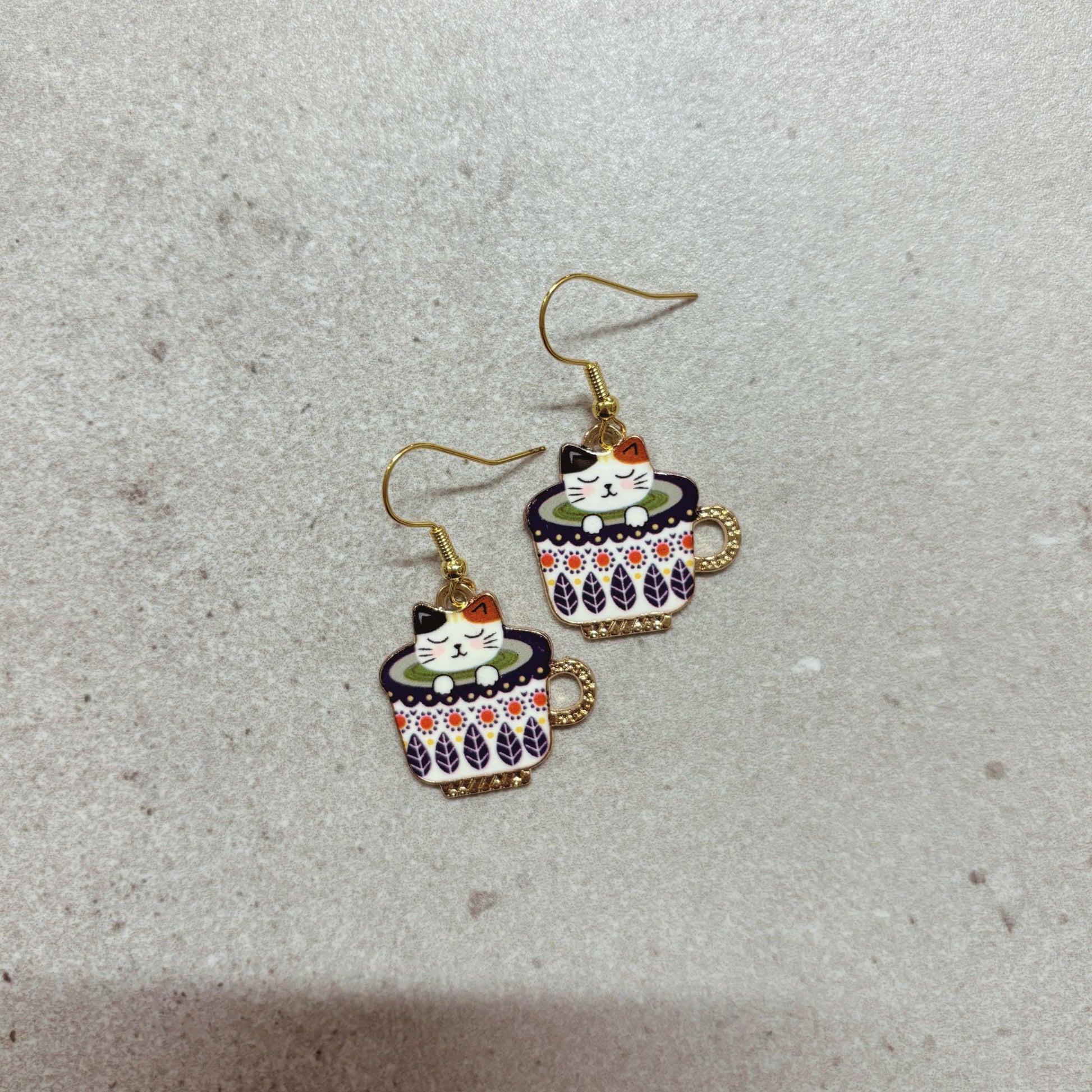 These Cat in Blue Flora Coffee Cup Earrings blend cute charm with a fun twist, perfect for adding a relaxed and playful touch to your everyday look.