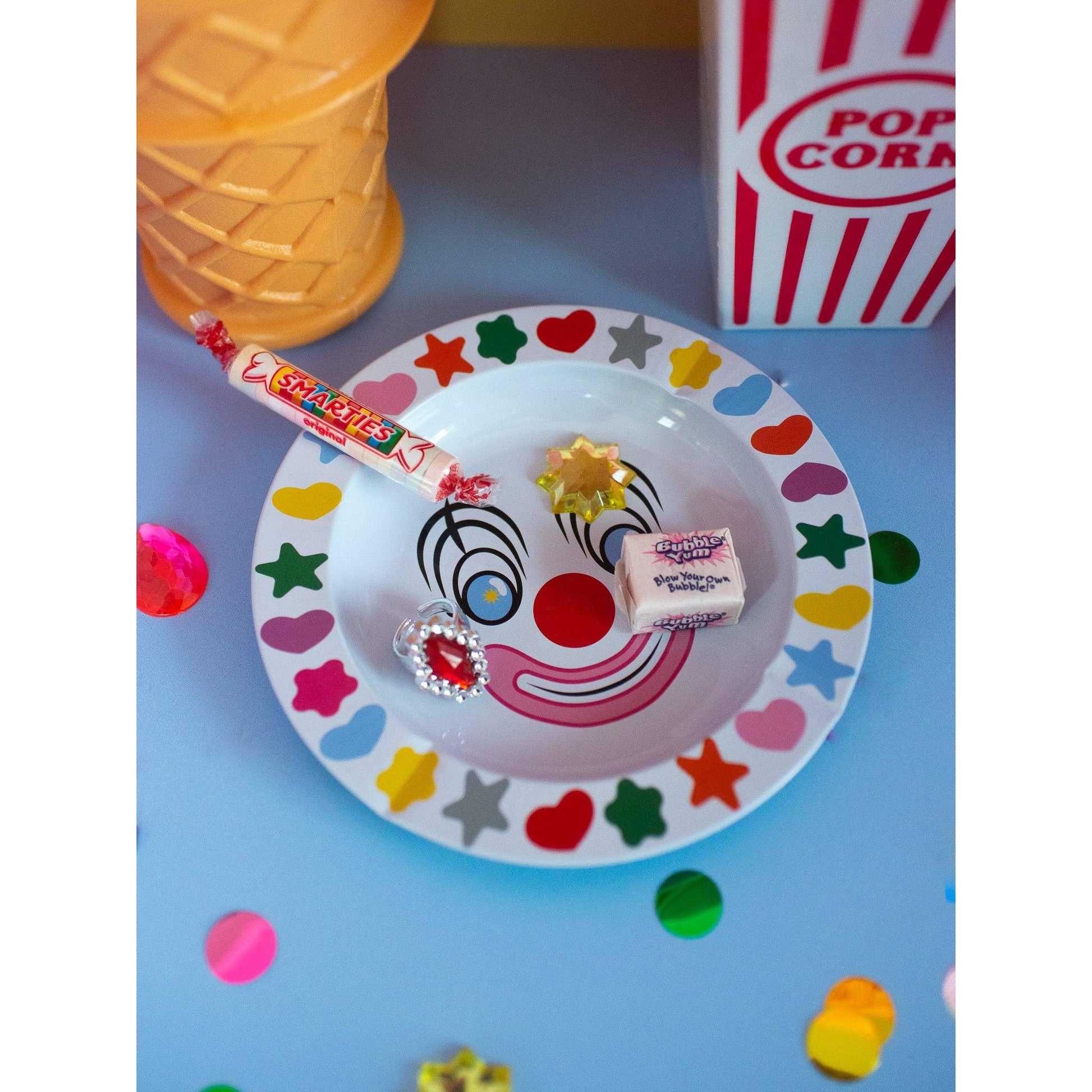 This tray features an iconic smiling clown face surrounded by colorful stars, hearts and flowers!