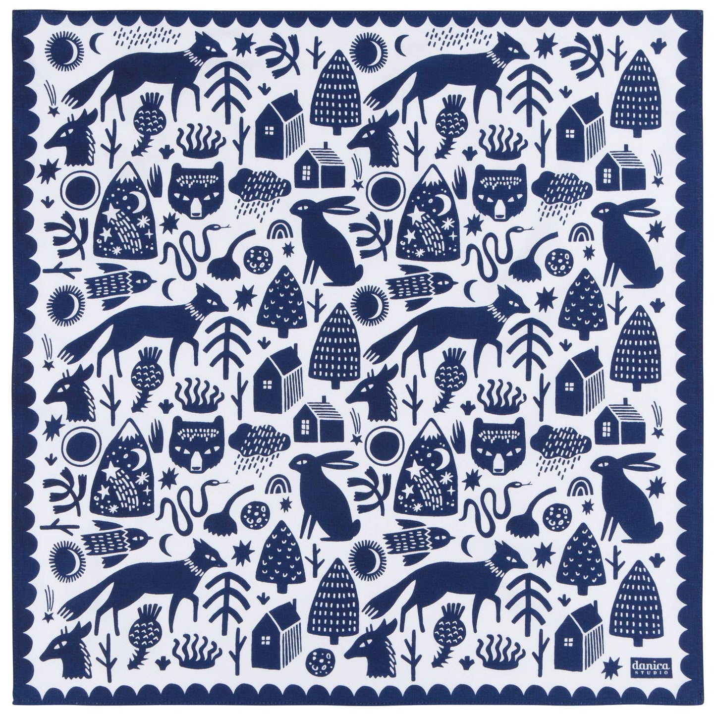 This Timber Bandana revisits tales of the past with folkloric block-print silhouettes in blue.