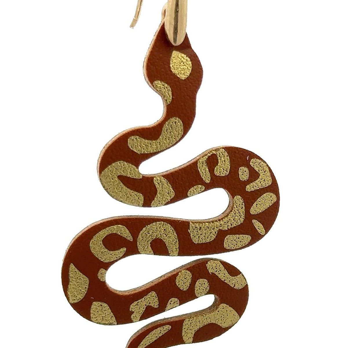 Snake Hook Dangle Statement Earrings | Brown and Jet Black Serpent EarringsLow stock: 3 left