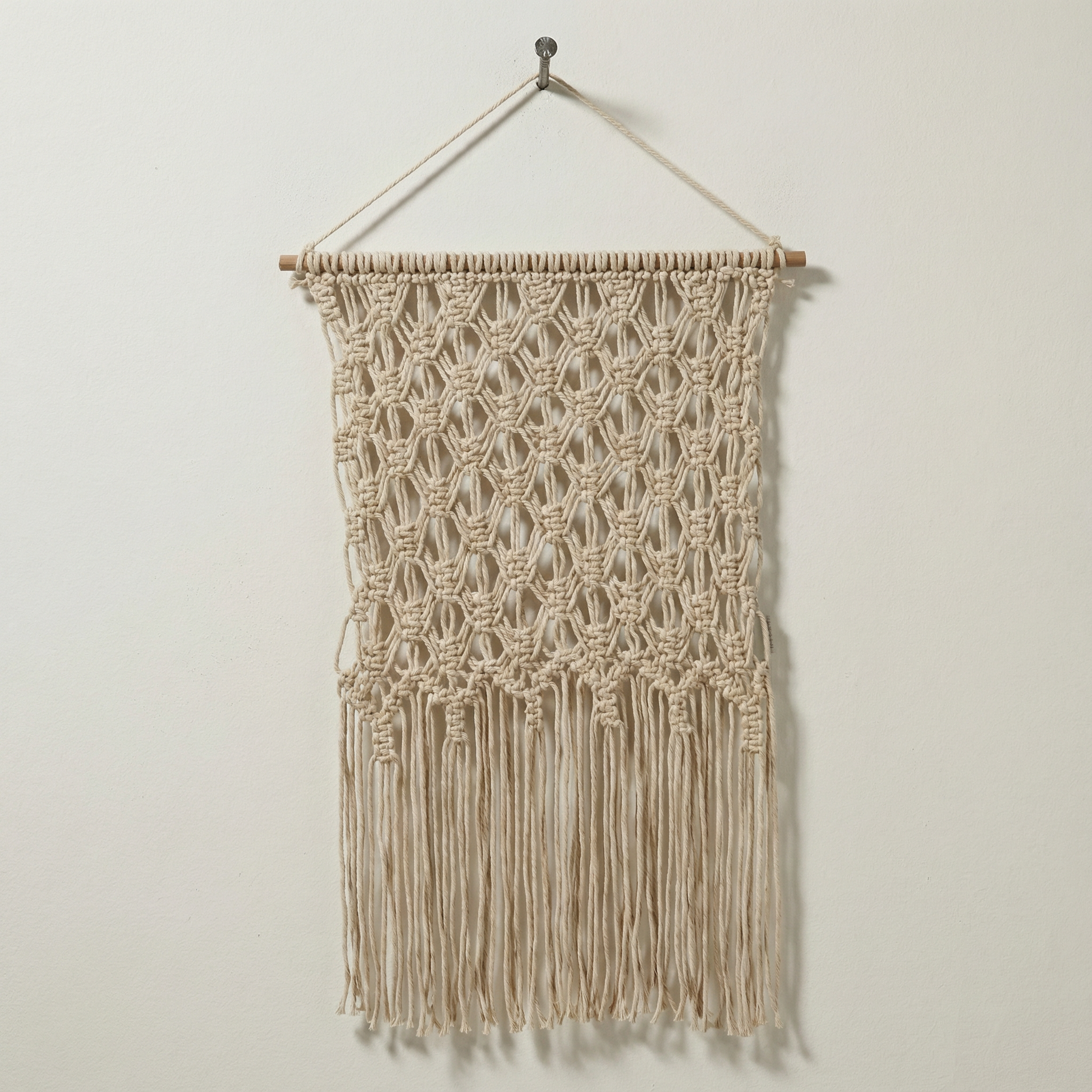 Extra Large Ivory Fringe Hand Knotted Macrame Wall Hanging | 24" x 35"