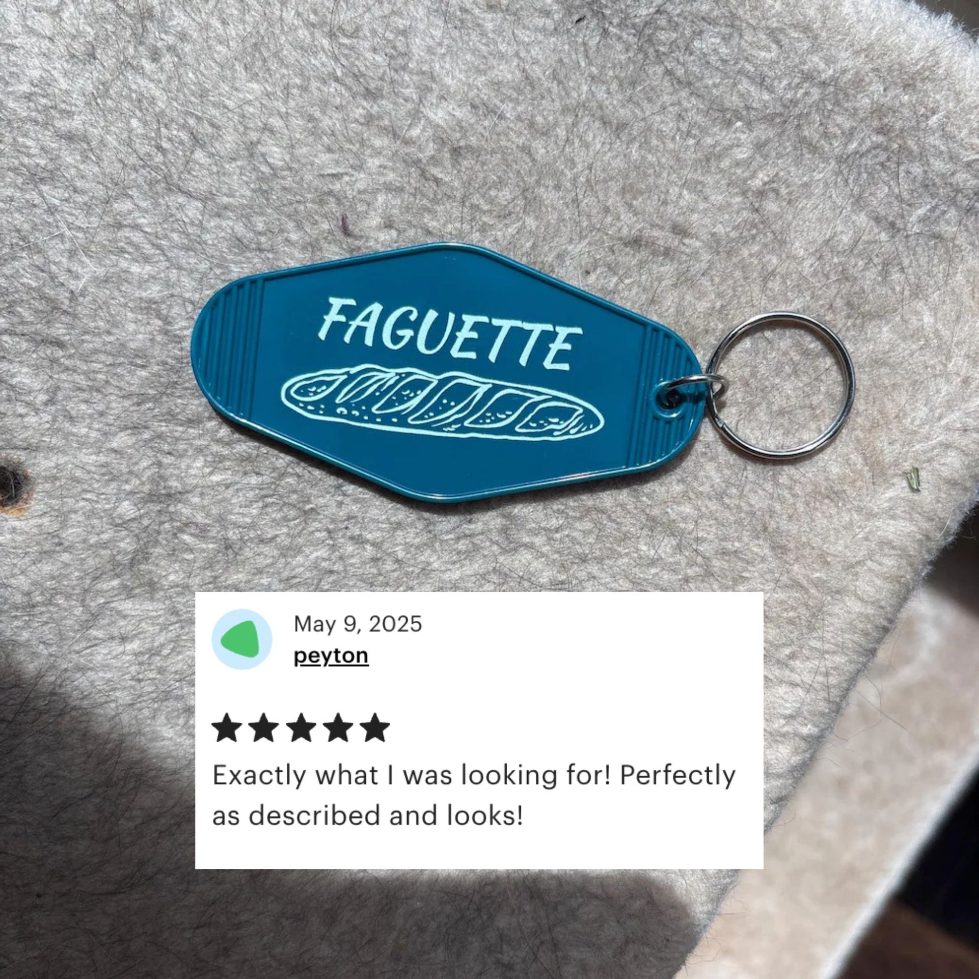 Faguette Gay Pride Motel Keychain with Baguette Bread Motif