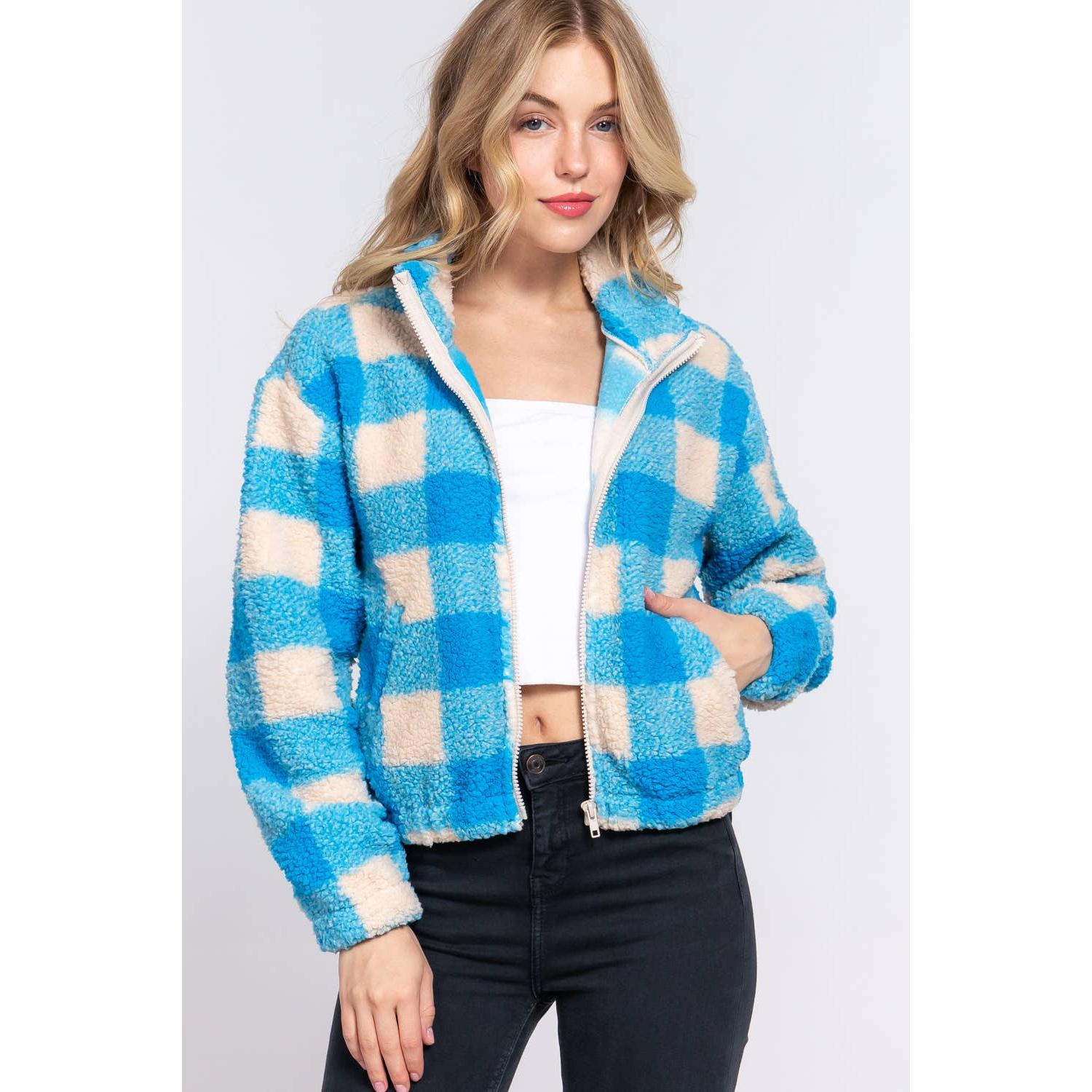 The Picnic Blanket Jacket | Plaid Faux Fur Coat in Blue or Orange [Sizes SM-L]Low stock: 4 left