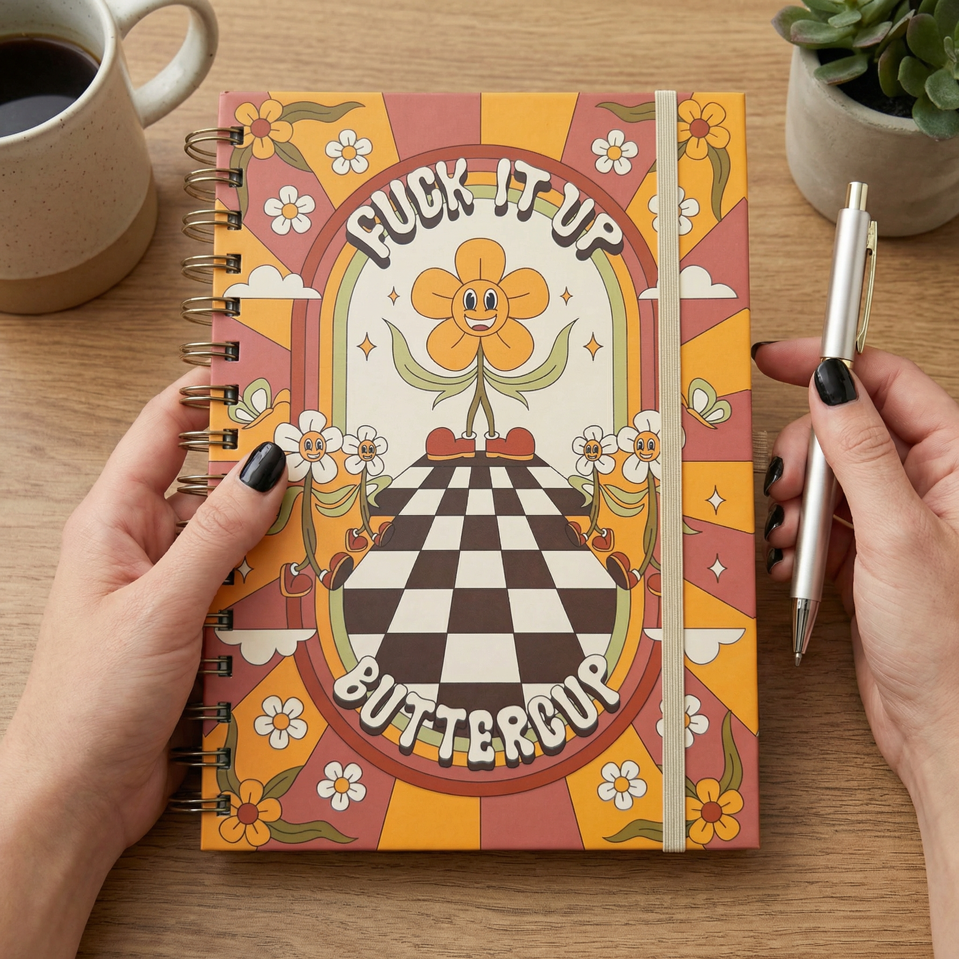 Introducing the Fuck It Up Buttercup Journal—a bold, retro-inspired notebook made for messy thoughts, big dreams, and unapologetic self-expression.