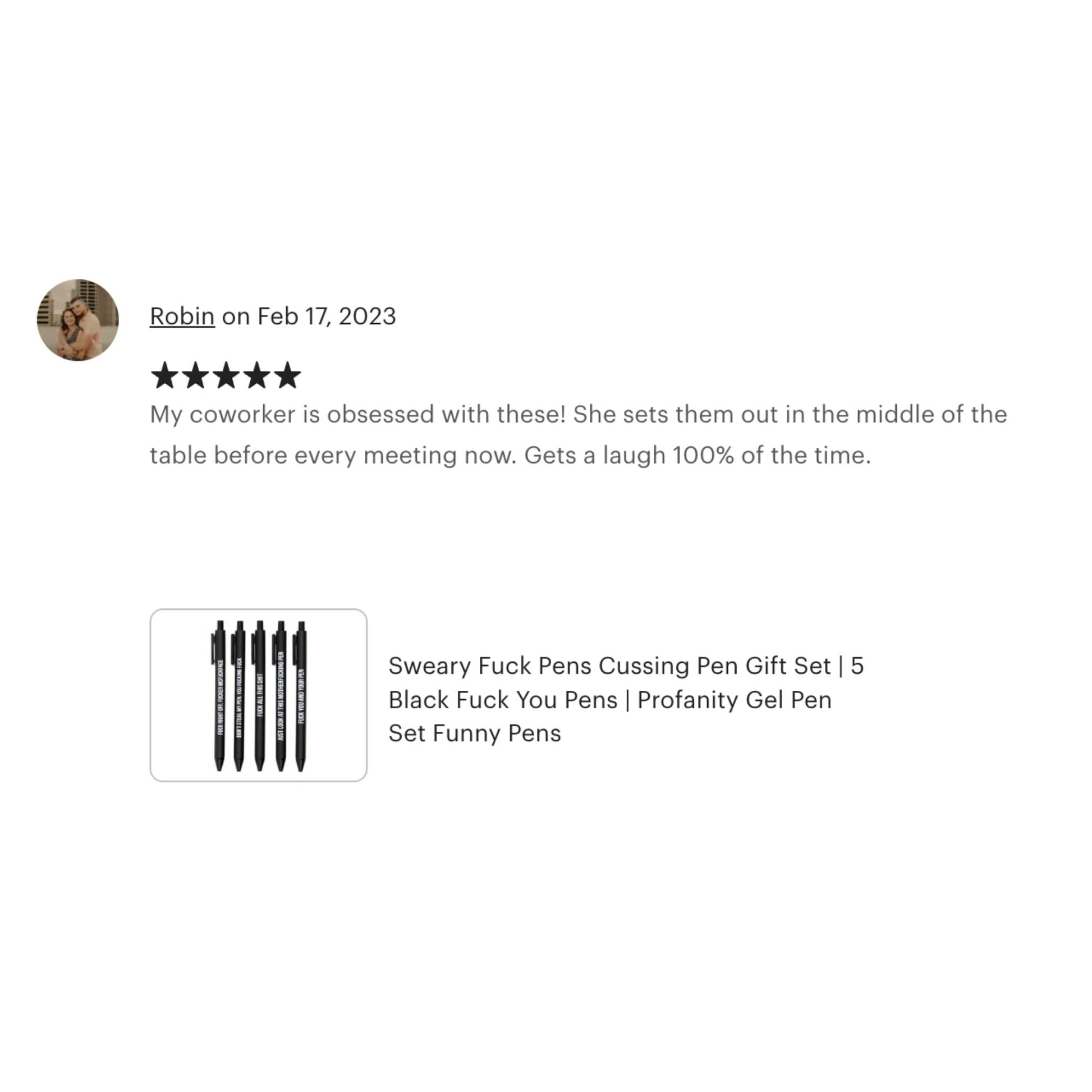 Sweary Fuck Pens Cussing Pen Gift Set - 5 Black Gel Pens Rife with ProfanityOut of stock