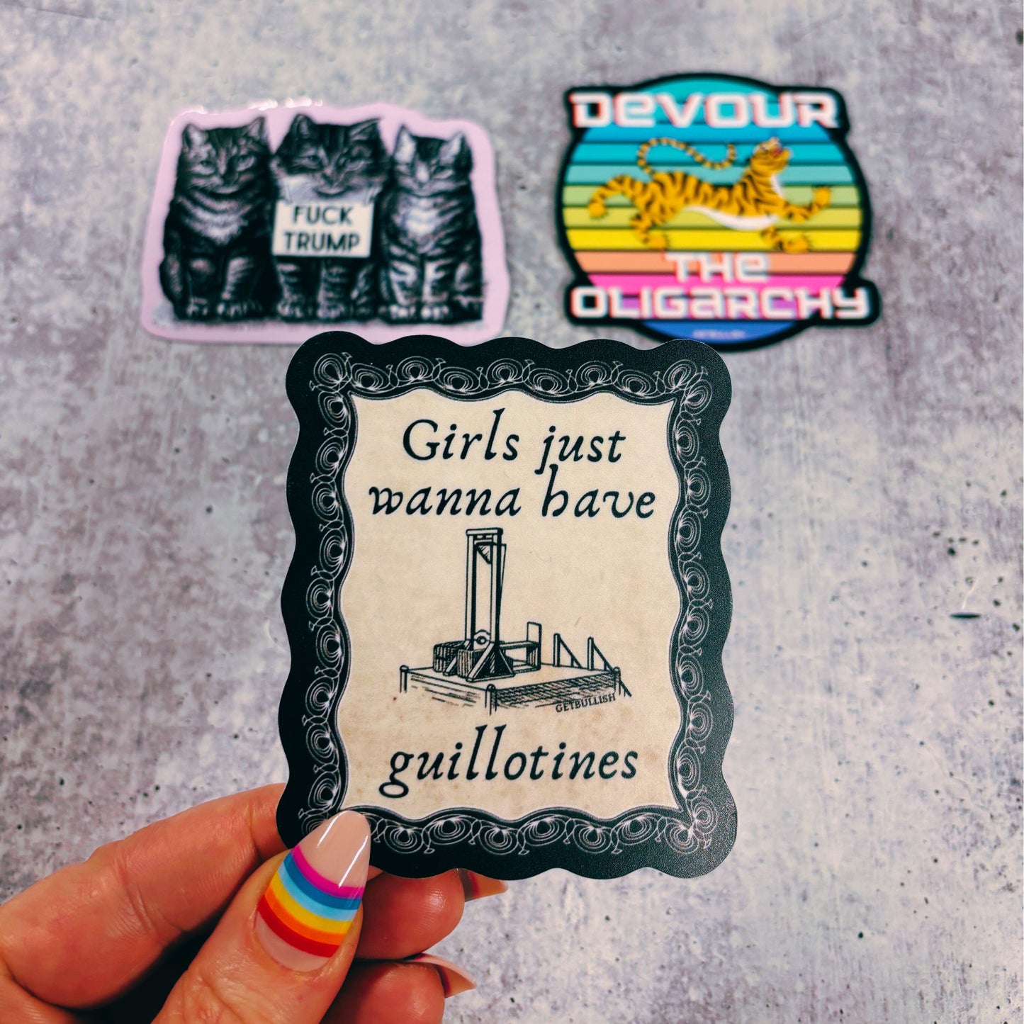 Girls Just Wanna Have Guillotines Beheading Device Sticker | Feminist Vinyl Die Cut Decal250 in stock
