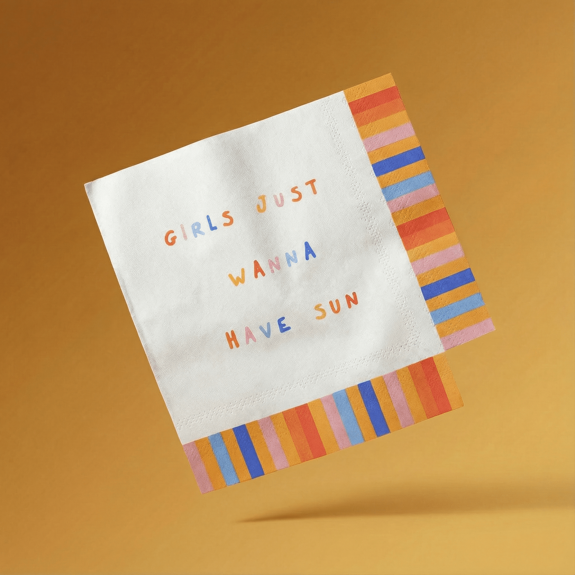 Girls Just Wanna Have Sun Fringe Beverage Napkins | Party Cocktail Paper Napkin | 5"
