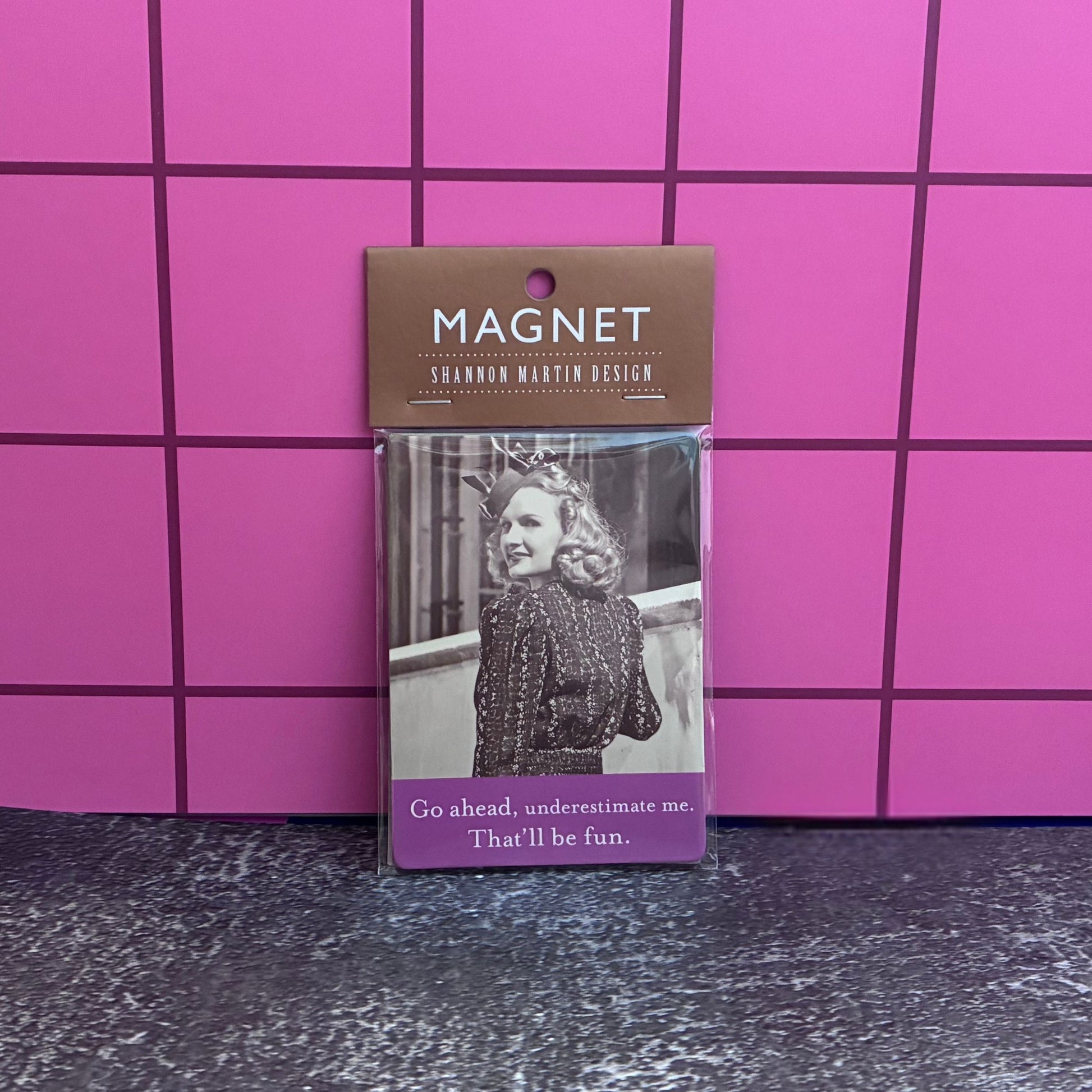 - Magnet reads: Go Ahead Underestimate Me. That'll be Fun
