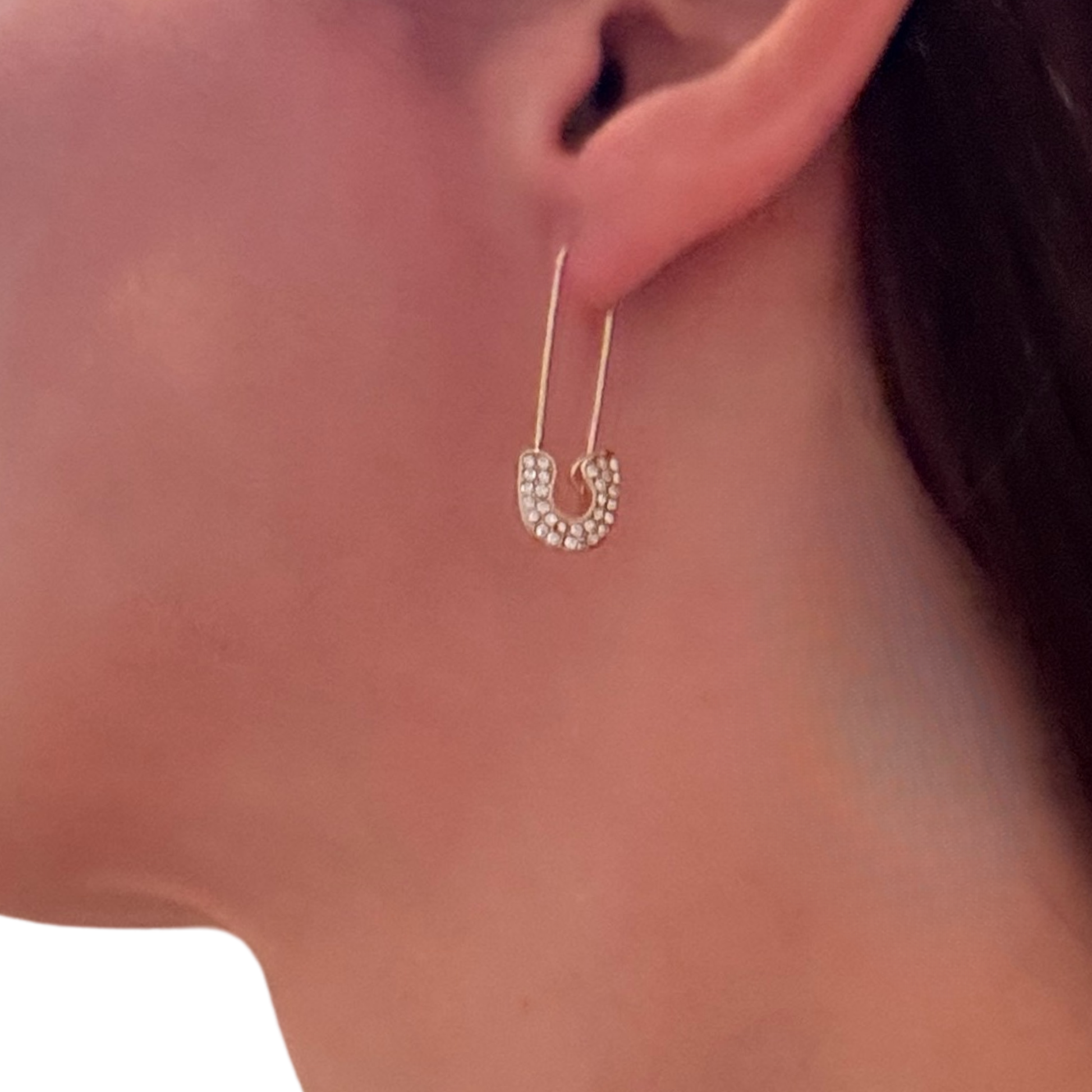 A little punk, a little luxe! Enjoy a classic rocker look with these safety pin earrings that have been glammed up with jewels and a sleek gold finish. A reimagined classic!