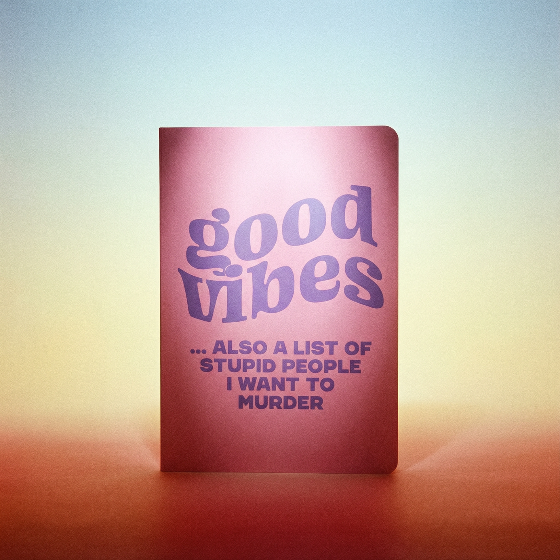 - Reads: “Good Vibes... Also A List Of Stupid People I Want To Murder”
