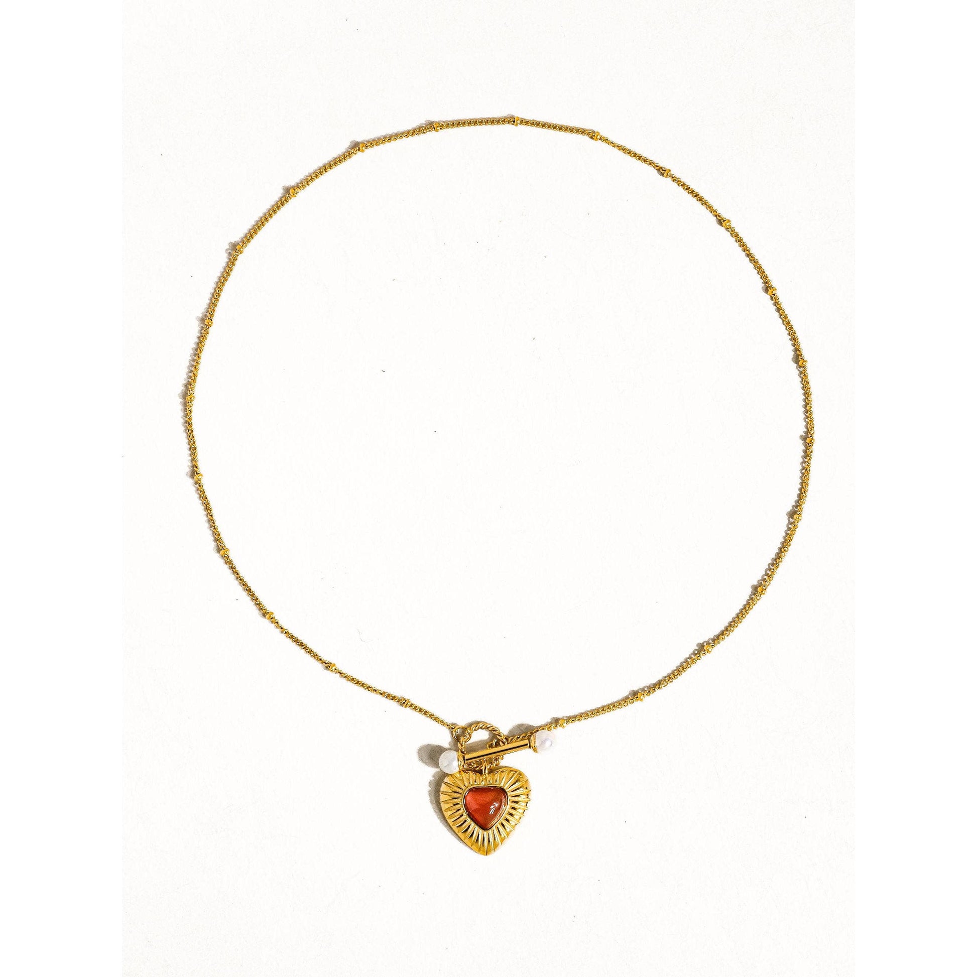Havana 18K Non-Tarnish Vintage Heart Chain Necklace | Gold Plated Stainless Steel with Agate Pendant, HypoallergenicLow stock: 1 left