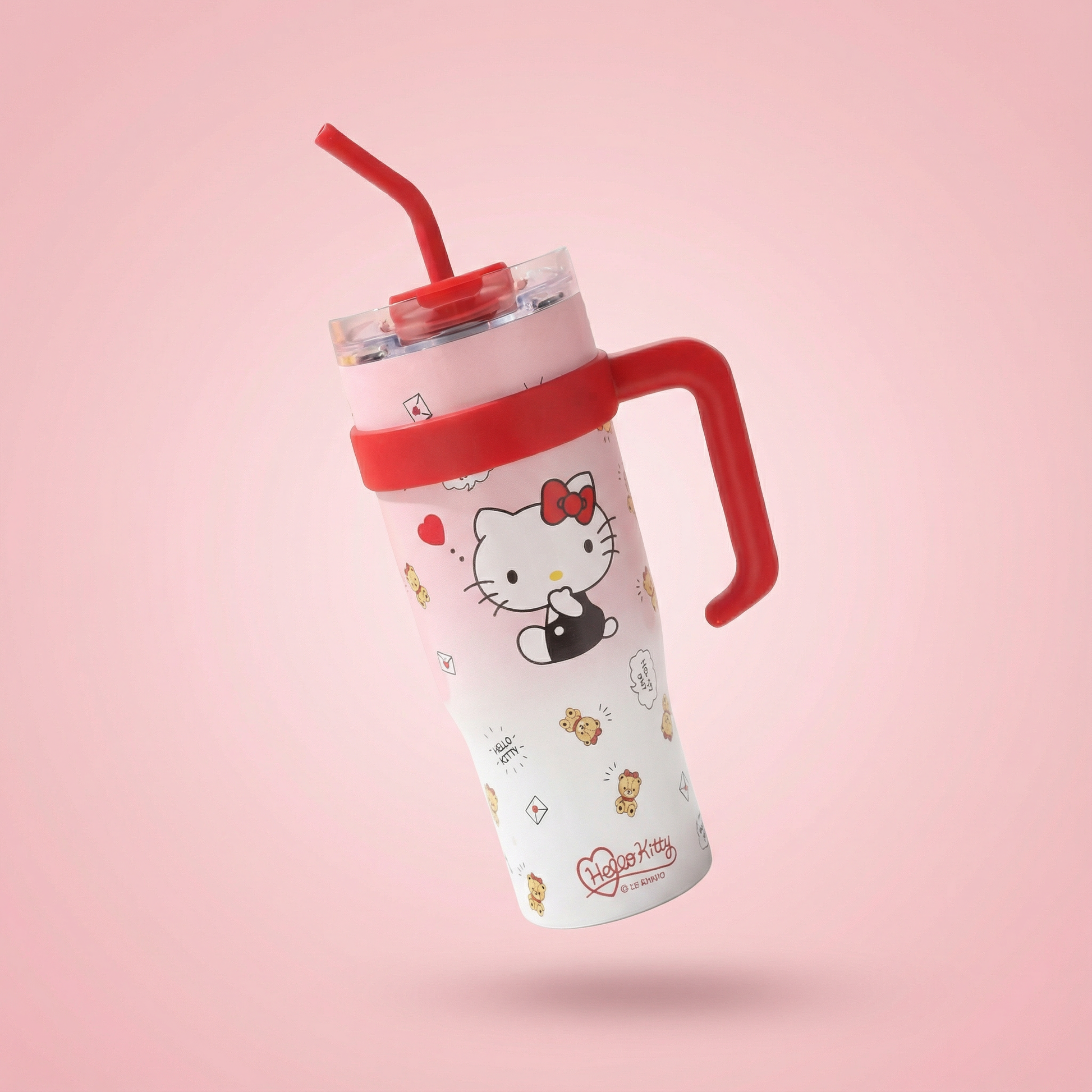 Hello Kitty 40 oz Stainless Steel Insulated Handle Tumbler in Pink and Red | XL Size with Straw | Gift for Her12 in stock