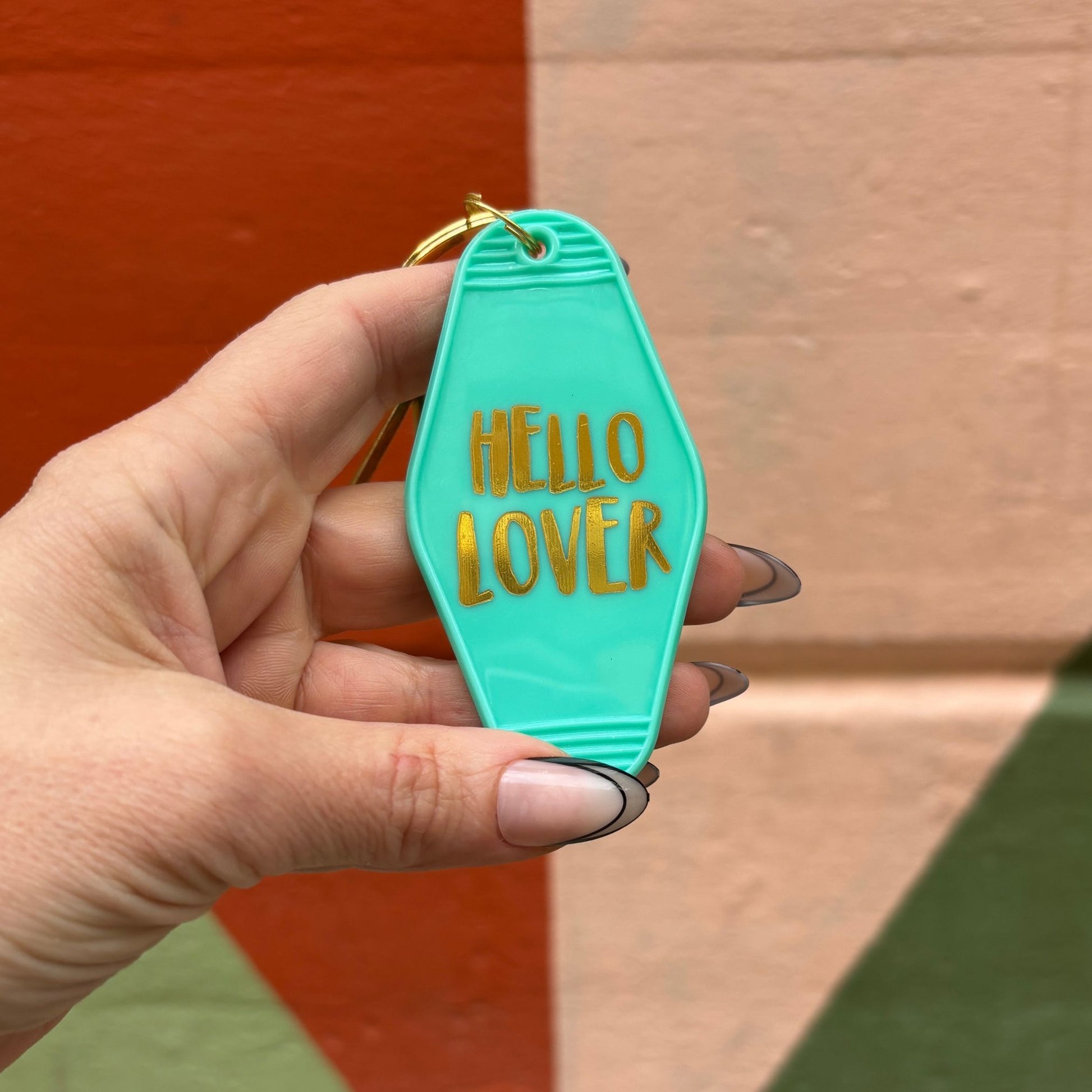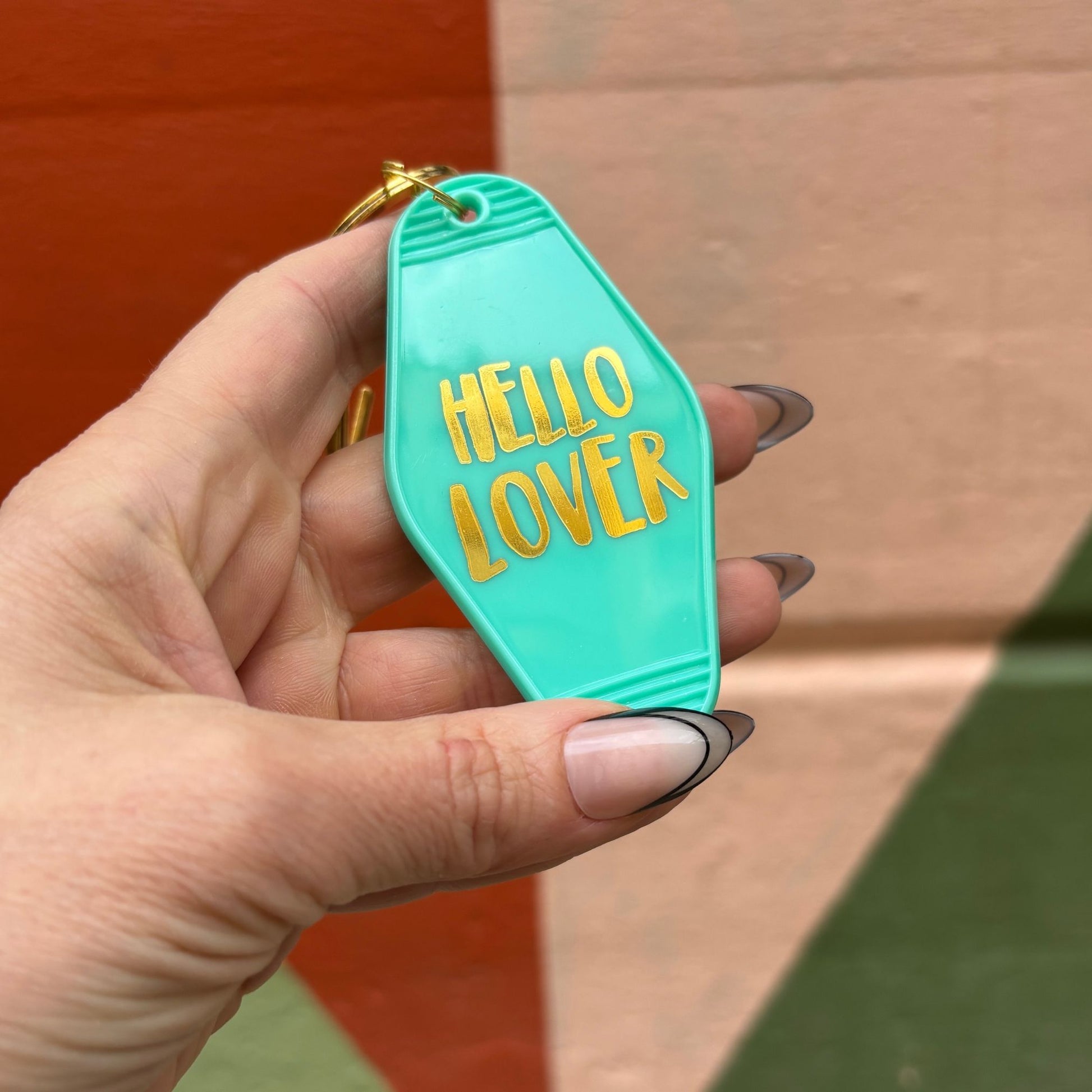 Hello Lover Motel Key Tag in Teal | Acrylic with Gold Accents
