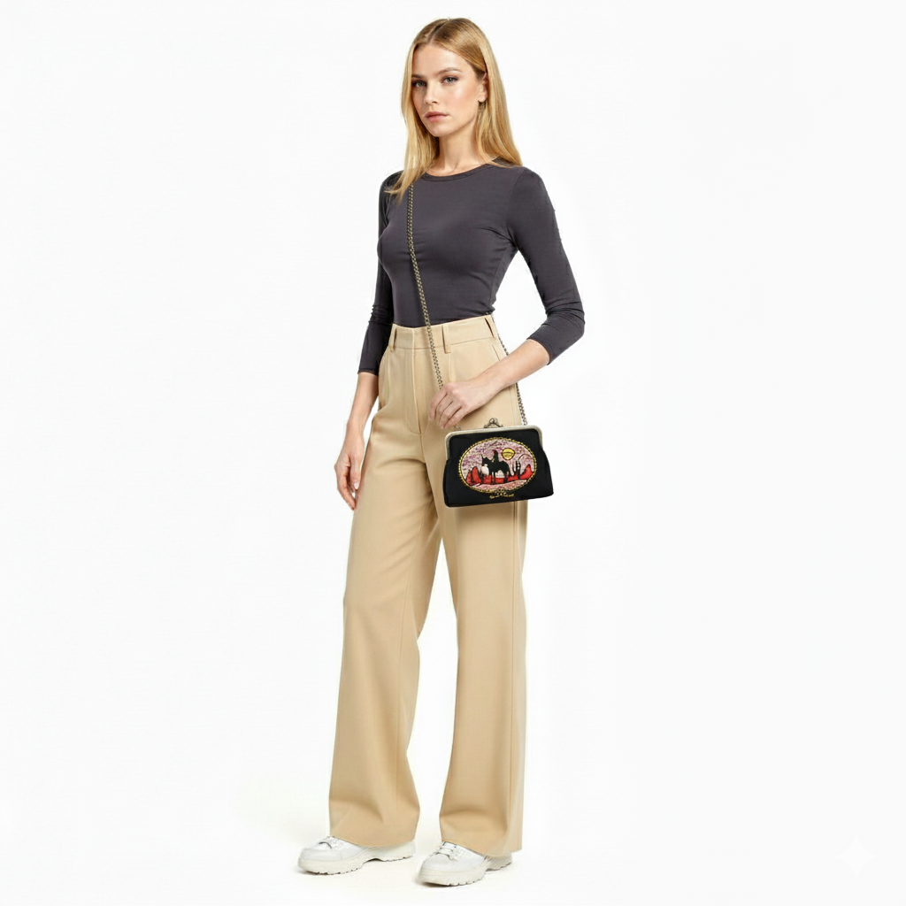 Say “howdy” to your new favorite statement piece! The Howdy Cow Girl on Horse Kisslock Bag delivers full-on whimsical western charm with its fully embroidered cowgirl motif and vintage-inspired silhouette. Whether you’re dressing up for a themed night out, adding flair to your everyday style, or searching for the perfect quirky gift, this bag is ready to ride into your wardrobe with personality to spare.