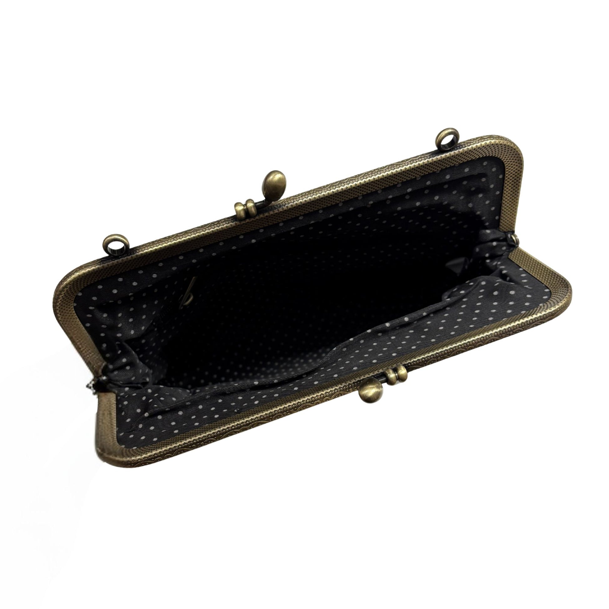 - Polkadot fabric lined interior