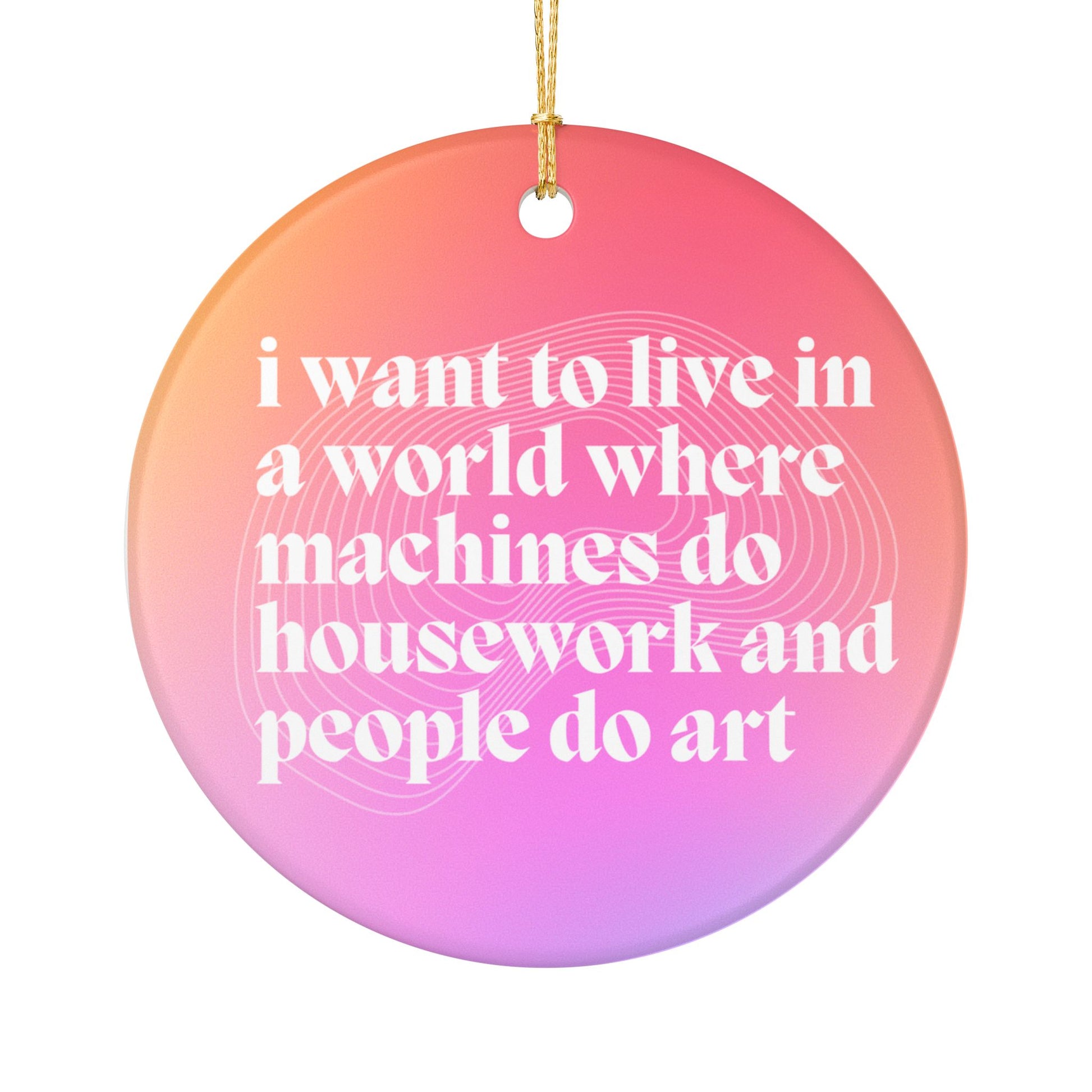 I Want to Live in a World Where Machines Do Housework Ceramic Ornament | Funny Feminist Holiday Decor | Gift for Artists & Dreamers