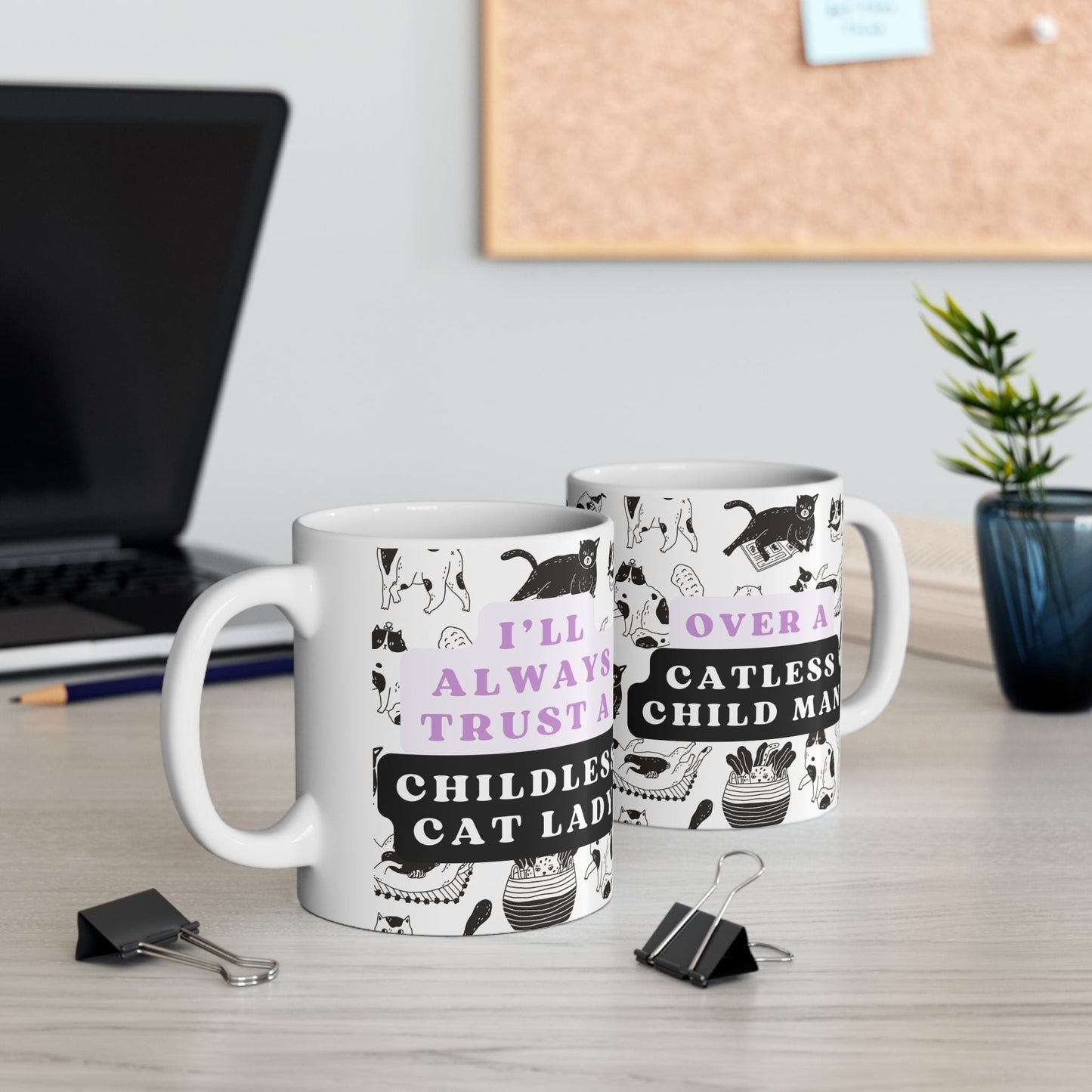 I'll Always Trust a Childless Cat Lady Over a Catless Child Man Ceramic Mug 11oz | Kamala JD Vance Election Meme | Vote 2024