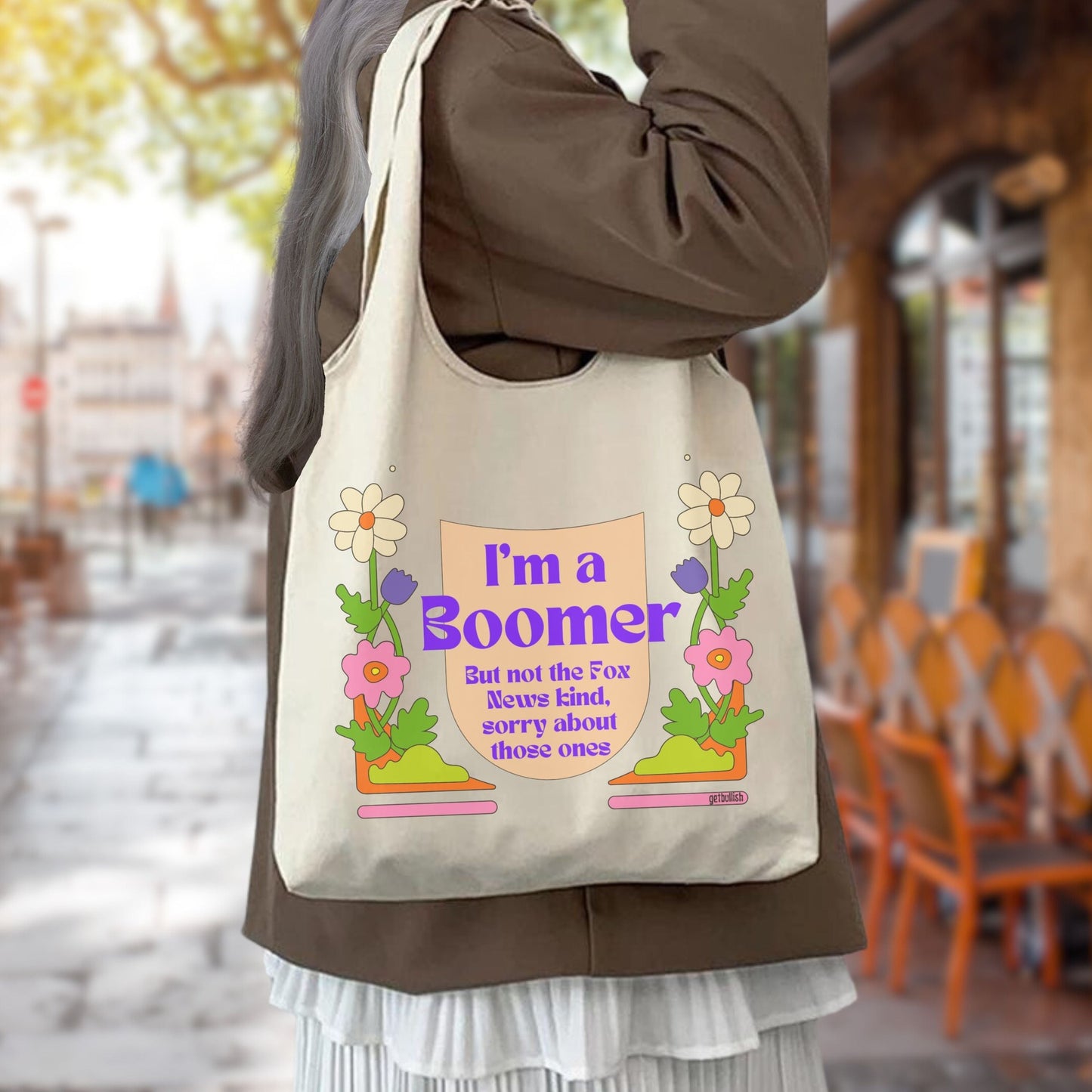 I'm a Boomer But Not the Fox News Kind Slouchy Canvas Tote in Natural