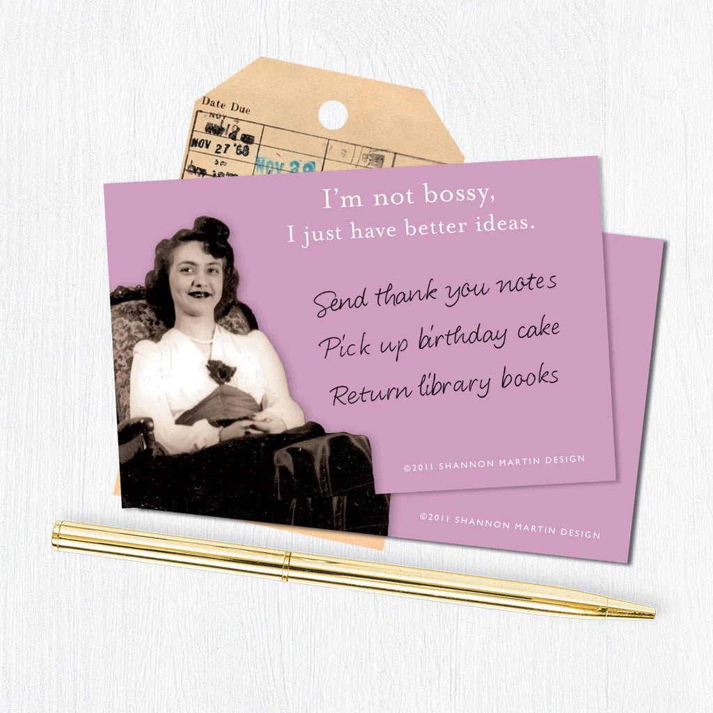 Leave a lasting impression with the I'm Not Bossy, I Just Have Better Ideas Sticky Notes in Pink by Shannon Martin Design. These sticky notes are made in the USA and feature a playful message that reads "I'm not bossy, I just have better ideas." With 75 stickies measuring 2 7/8" x 4 3/8", these notes are perfect for adding a touch of humor to your daily reminders and messages.