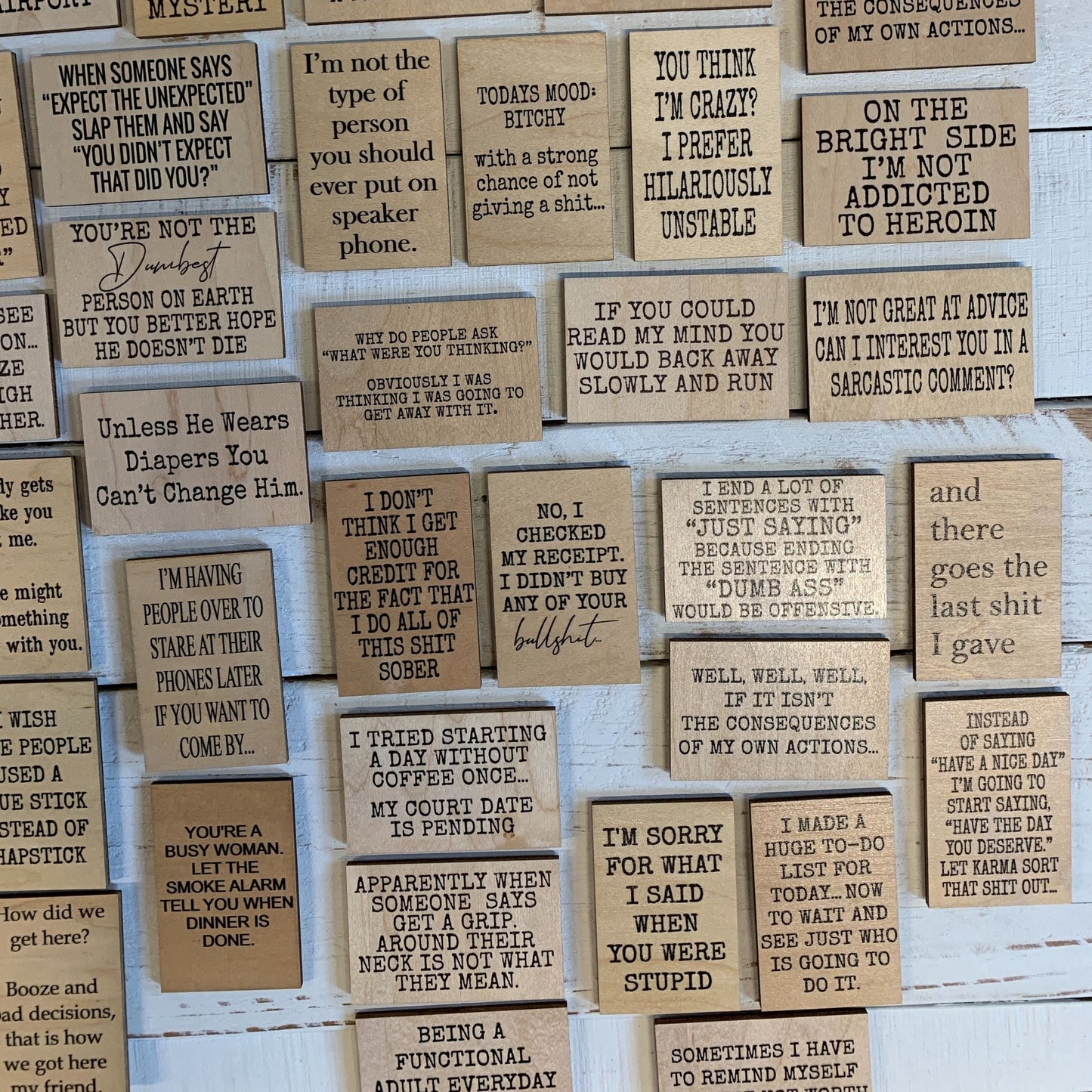 Looking for a unique gift for the sarcastic friend in your life? Check out our "I'm Not Great At Advice" funny wood magnet, perfect for adding a touch of humor to any refrigerator. Crafted from durable 2x3 inch wood, this magnet features a witty sentiment that will never peel or fade, making it a long-lasting addition to any kitchen decor. Makes a thoughtful gift for anyone who appreciates a good laugh.
