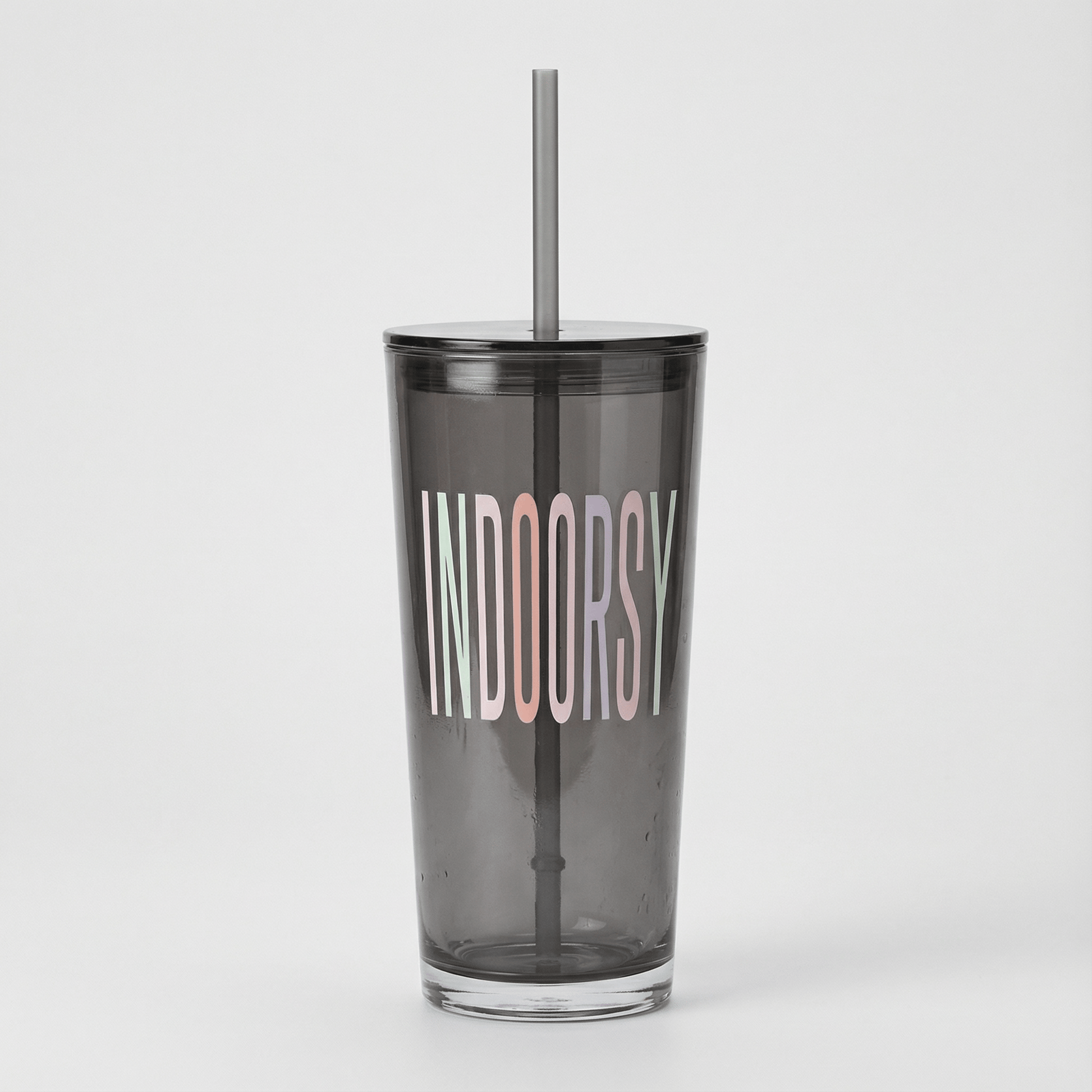 Sip your favorite coffee or cocktail in the chic Indoorsy Glass Tumbler with Straw, featuring a sleek black glass design and a convenient 20oz capacity. This stylish tumbler is perfect for enjoying beverages at home or on the go, making it a great gift for anyone who loves to stay cozy indoors during the holidays. Add a touch of sophistication to your drinkware collection with the Indoorsy Glass Tumbler, crafted from durable glass with a trendy black finish and a vibrant multicolored letters sentiment. Whether you're unwinding with a cocktail or staying hydrated with water, this 20oz tumbler is a practical and stylish choice for any indoor activity, making it an excellent gift for friends or family members who appreciate unique and functional items. Cheers to comfort and style!