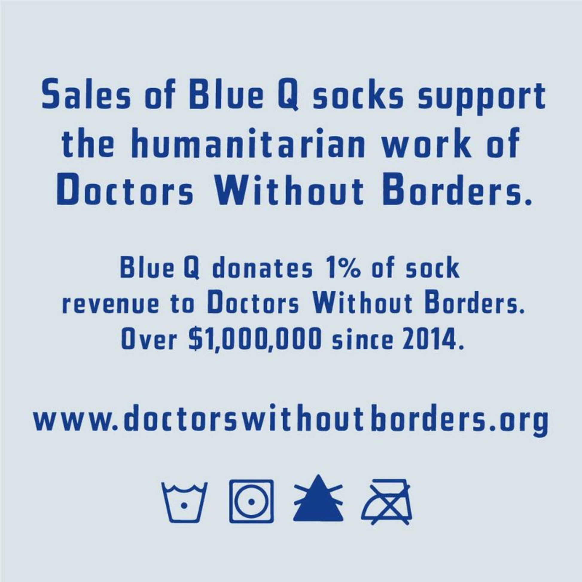 - 1% of the sale of all Blue Q socks supports the humanitarian work of Doctors Without Borders.