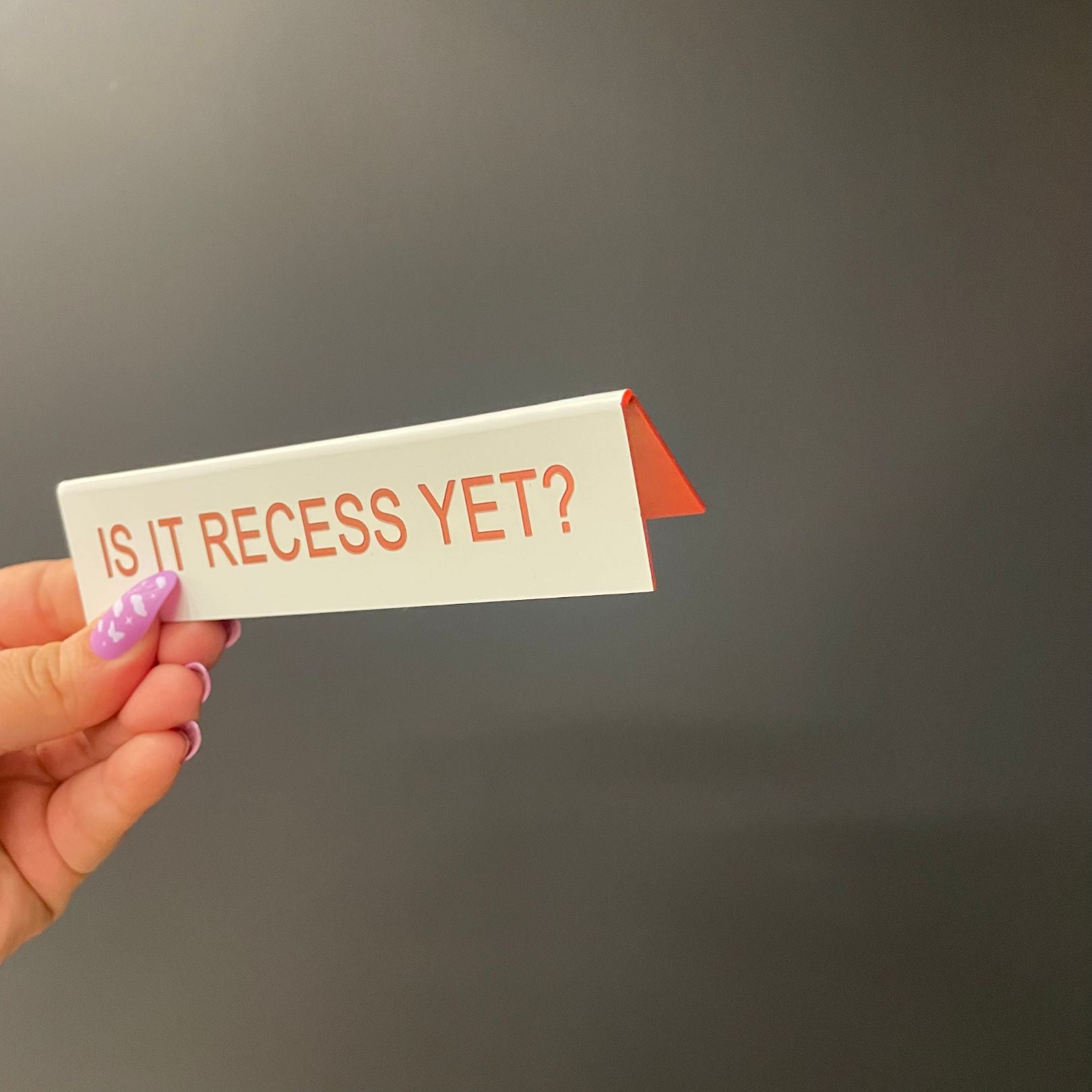 Is It Recess Yet? Mini Desk Sign | Laser Engraved Nameplate in White | 5.8″ x 1.3″Low stock: 2 left