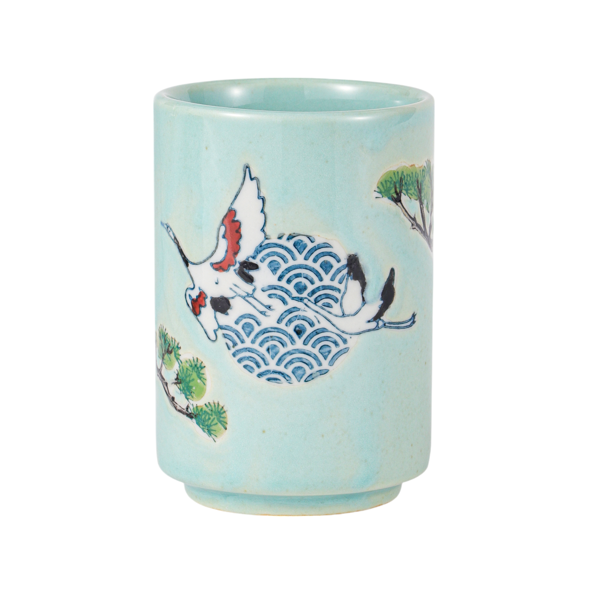 Experience the elegance of traditional Japanese artistry with the Japanese Crane Yunomi Style Tea Cup. Crafted from fine porcelain, this cup features a beautifully detailed crane and pine motif—symbols of longevity and good fortune in Japanese culture. The reactive glaze finish adds a unique, handcrafted look, making each cup slightly one-of-a-kind.