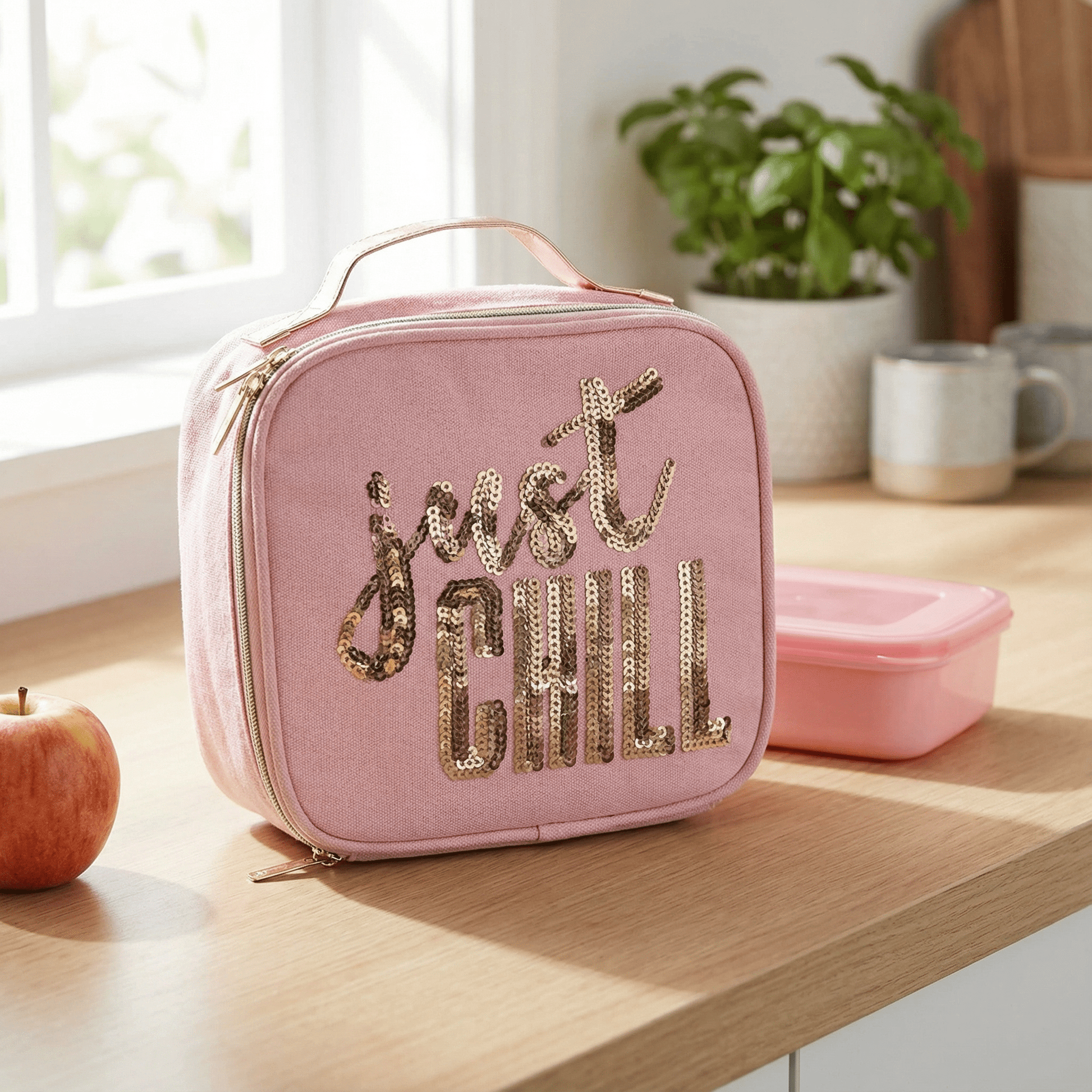 Just Chill Pink Combo Lunch Set | Sequin Embellished Lunch Bag and 6.25" Square Food Container11 in stock