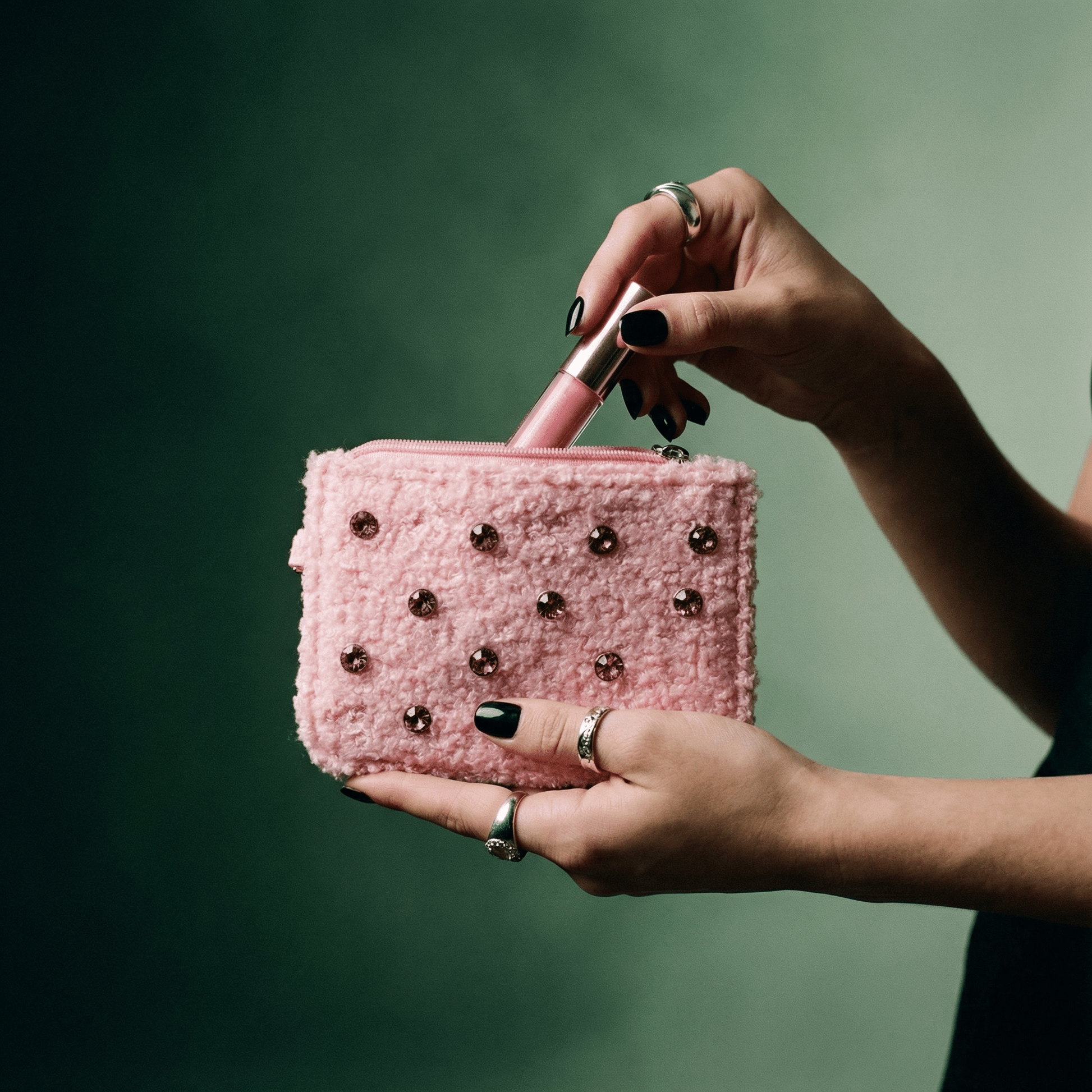 Add a touch of sparkle to your everyday essentials with Crystal Embellishment Pink Keychain Pouch. Designed for convenience and style, this compact pouch is the perfect size for carrying your cards, cash, and small necessities while you’re on the go.