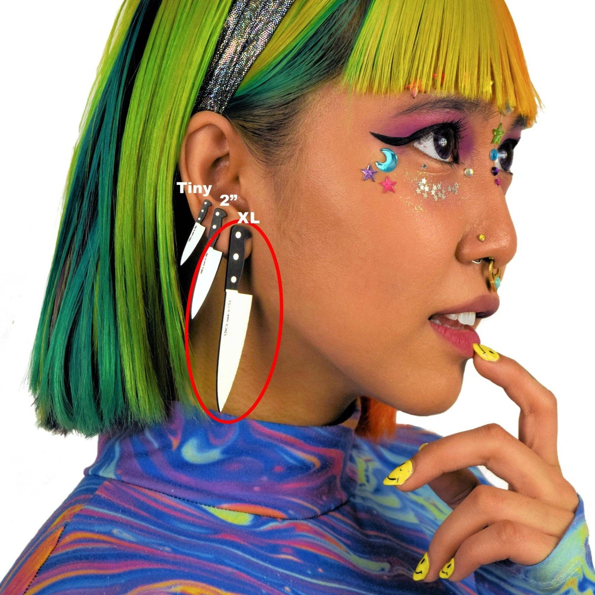 Chef's Knife Earrings | Extra Large 3" | King-sized Goth-Punk-Rock Jewelry EarringsLow stock: 9 left