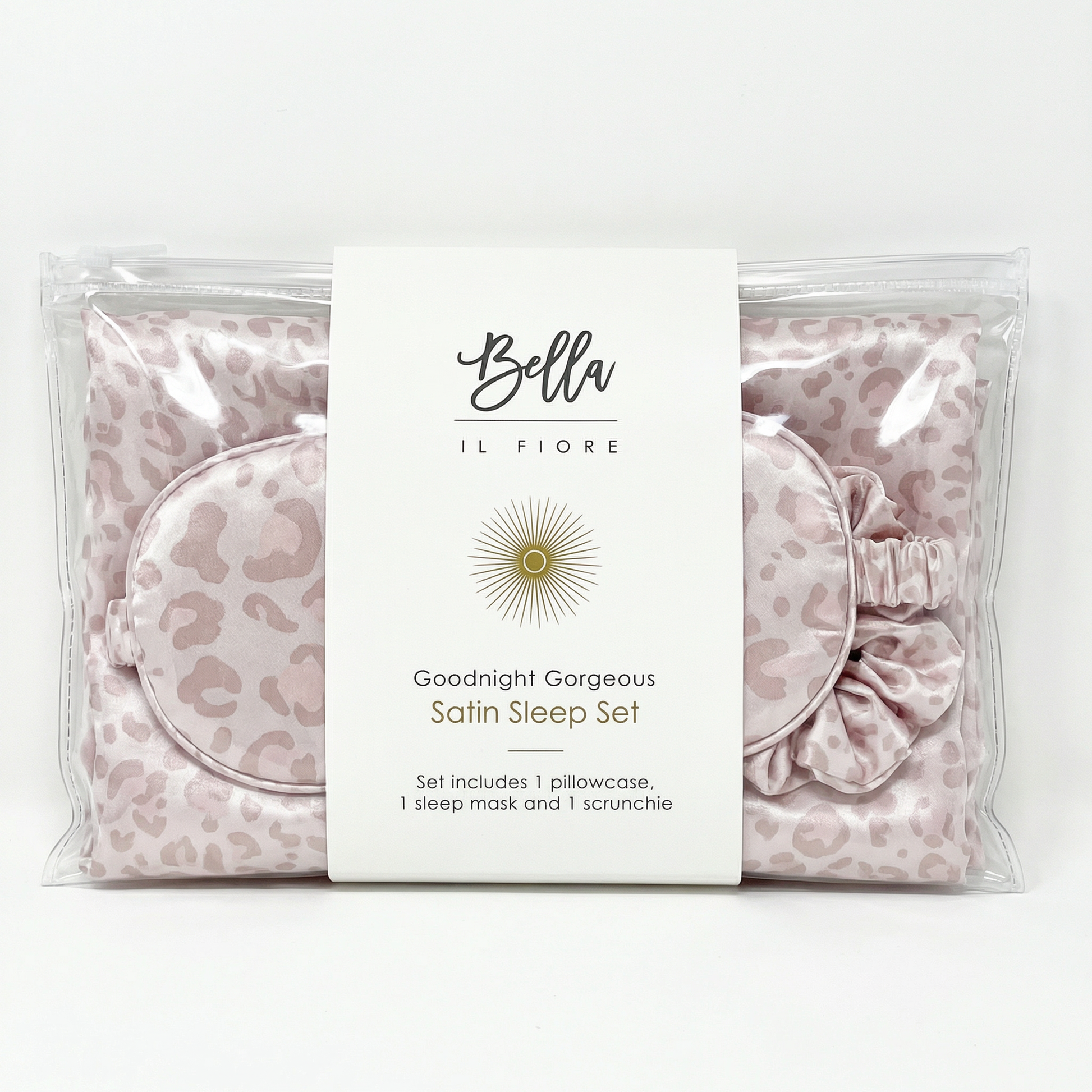 Giftable Leopard Goodnight Gorgeous Satin Sleep Set [Includes Pillowcase, Sleep Mask + Scrunchie]23 in stock