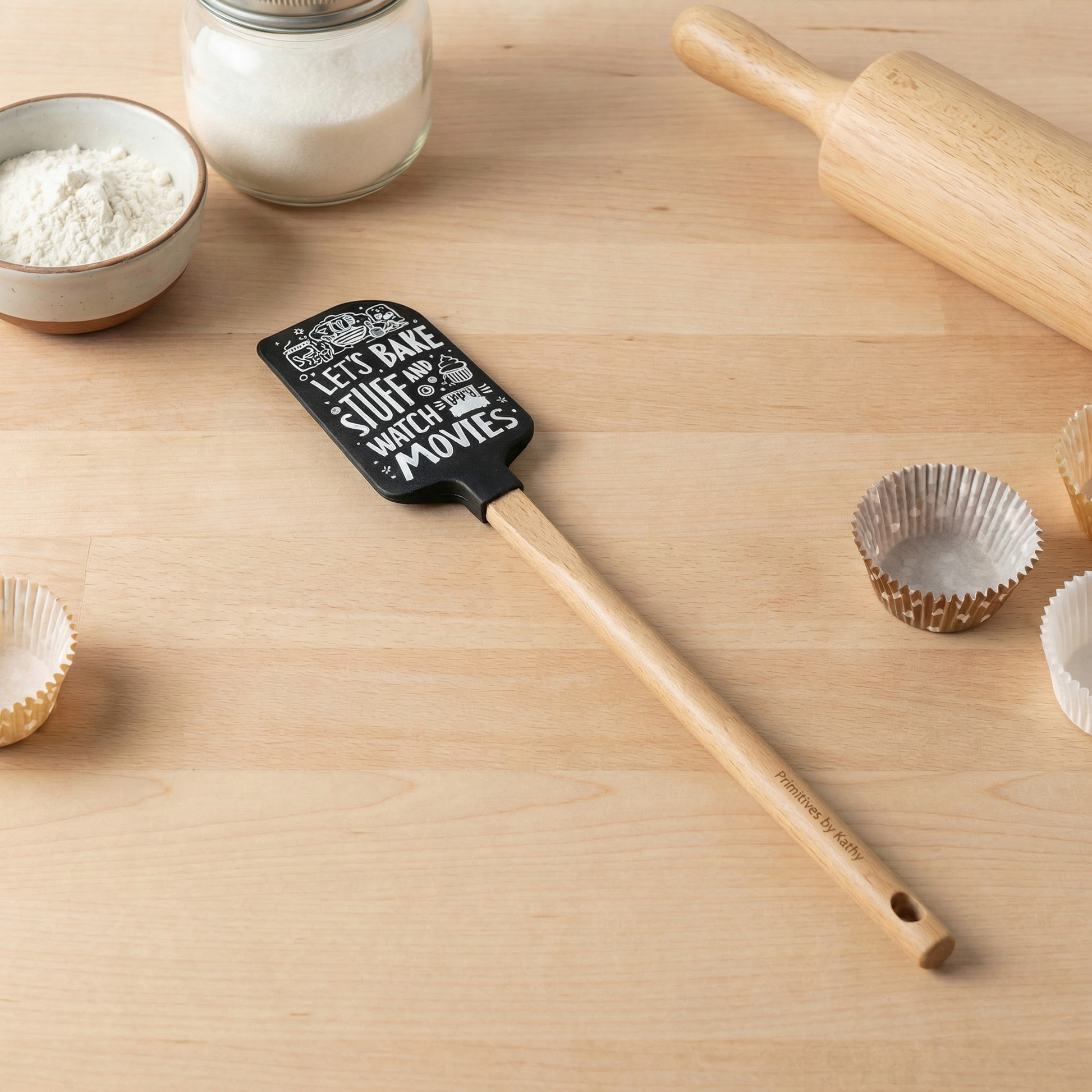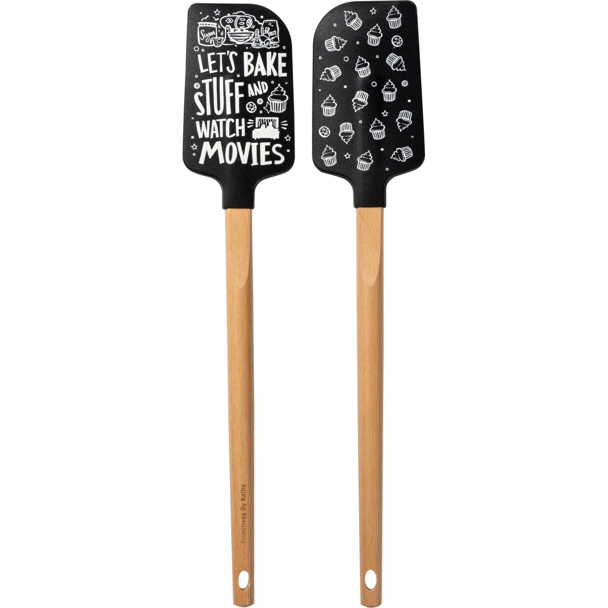 Let’s Bake Stuff and Watch Movies Silicone Spatula with Wooden Handle | Heat Resistant Kitchen Baking Utensil