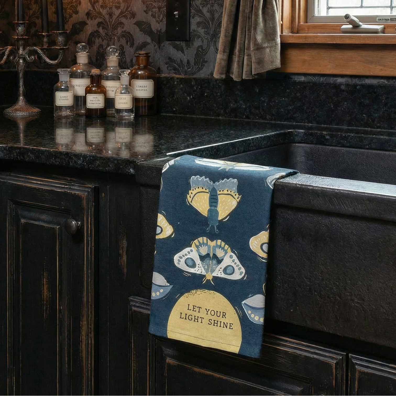 Let Your Light Shine Gothic Moth Dish Cloth TowelLow stock: 2 left