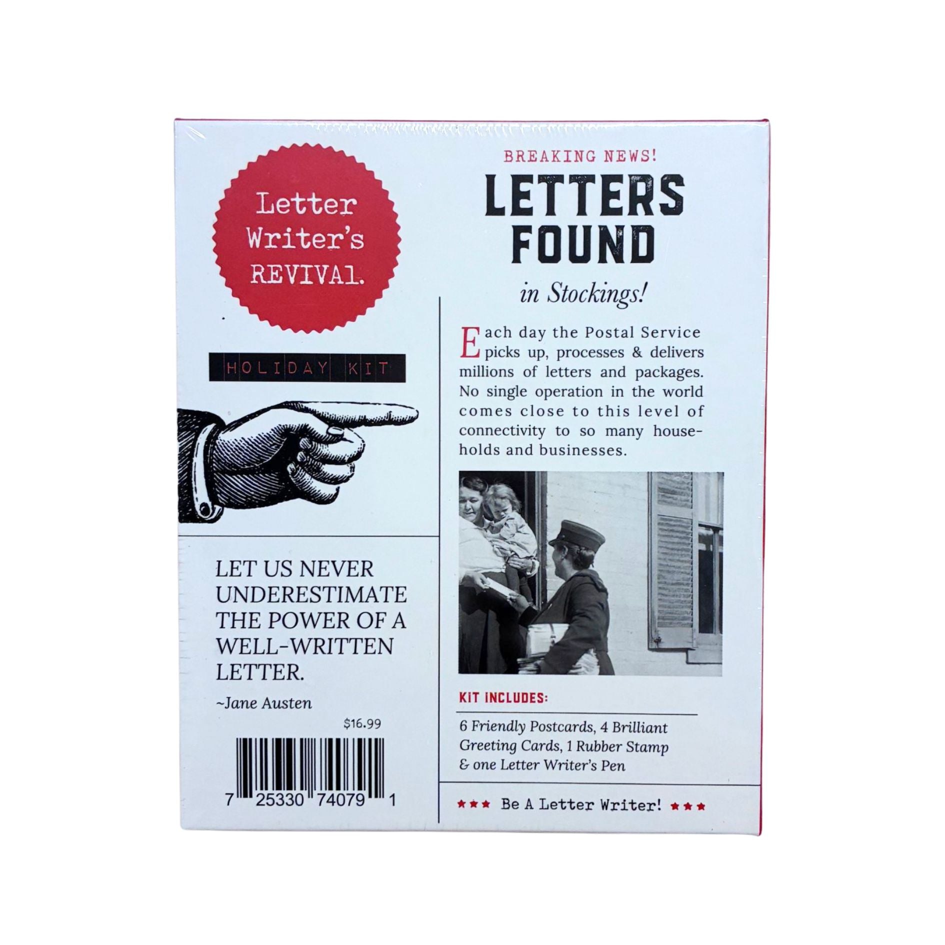 Holiday Kit Letter Writer's Revival Stationery Set | Letter-Writing Kit with Greeting Cards, Postcards, Pen, Rubber Stamp