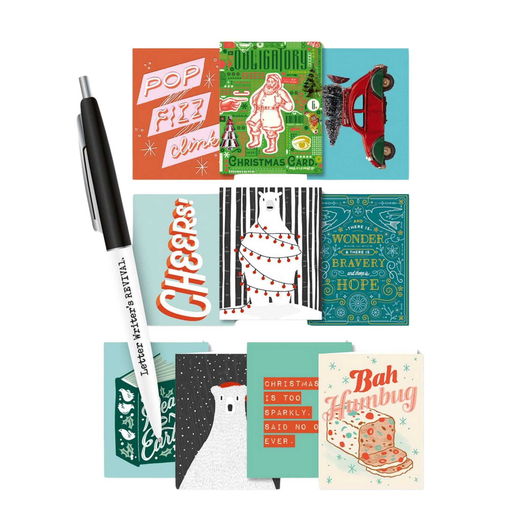 Holiday Kit Letter Writer's Revival Stationery Set | Letter-Writing Kit with Greeting Cards, Postcards, Pen, Rubber StampLow stock: 2 left
