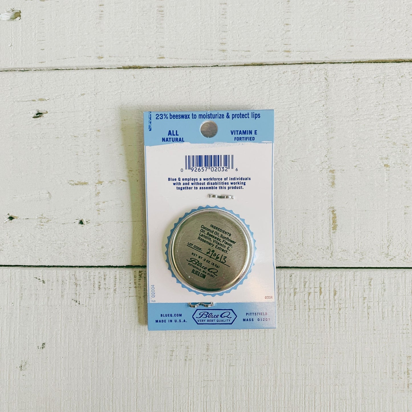 Indulge in the soft, sensuous Vanilla Cardamom Lip Shit Lip Balm by BlueQ. This .3oz beeswax formula is perfect for moisturizing and protecting dry, chapped lips, making it a funny yet useful gift for any occasion. Made in the USA, this lip balm comes in an adorable stamped metal tin and is fortified with Vitamin E for extra nourishment.