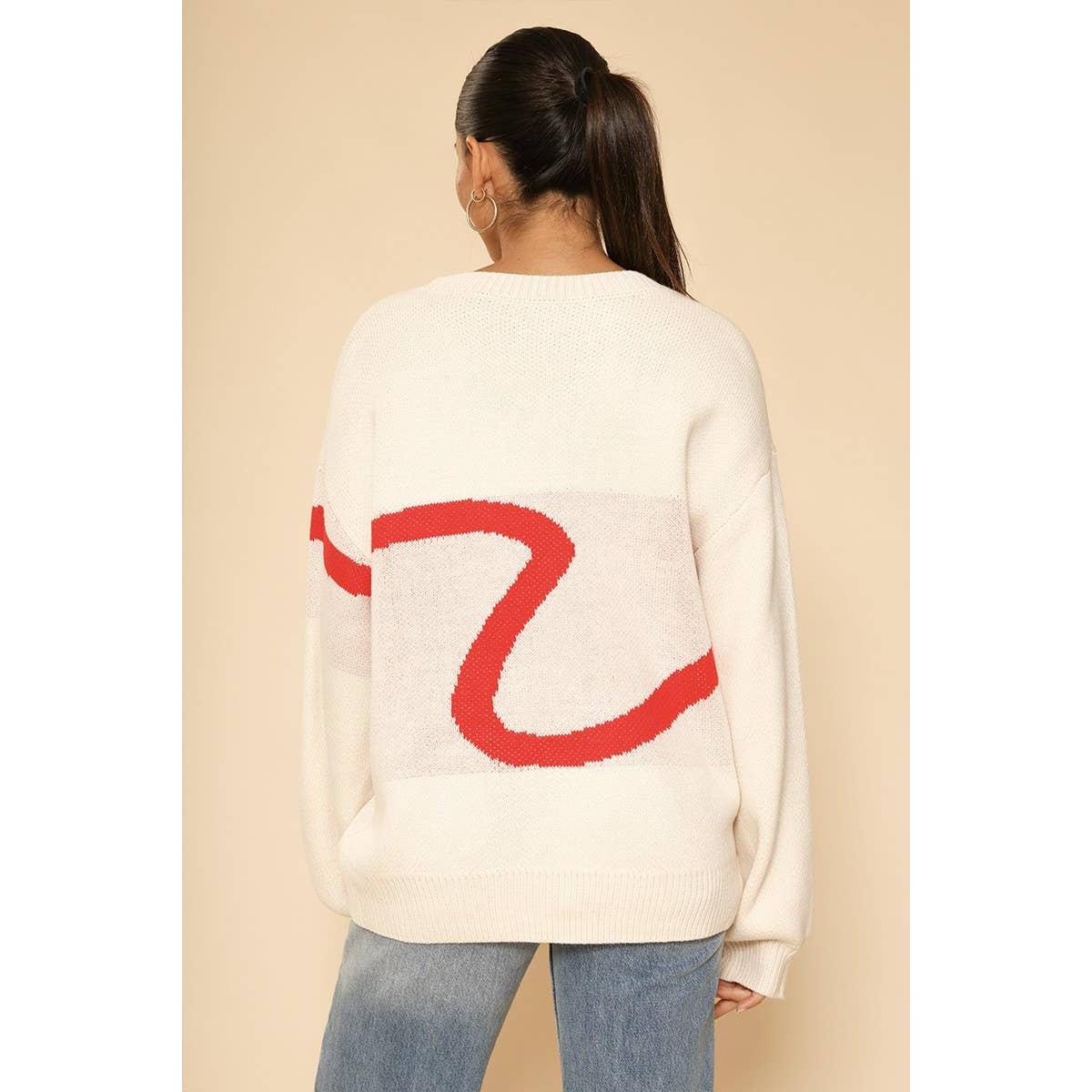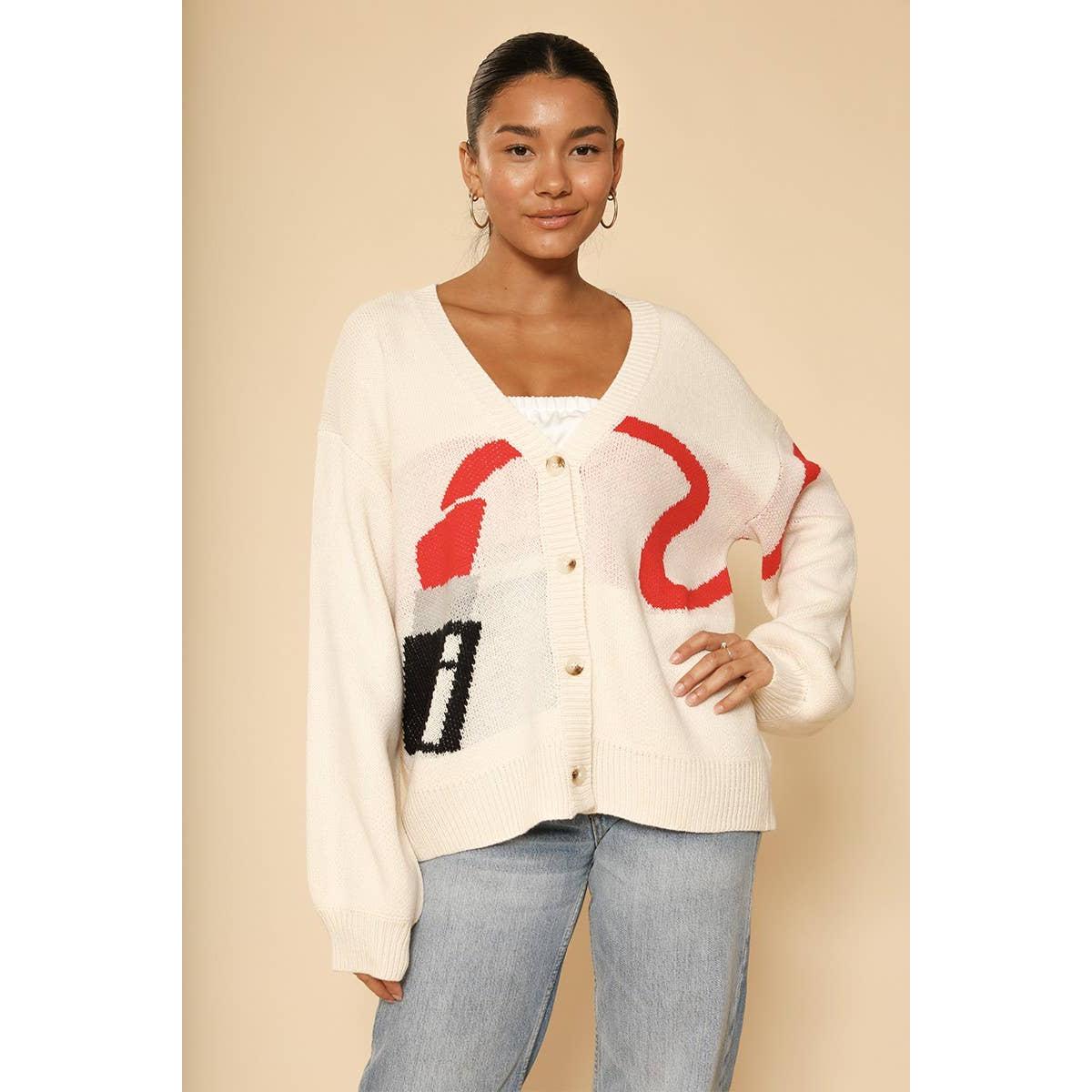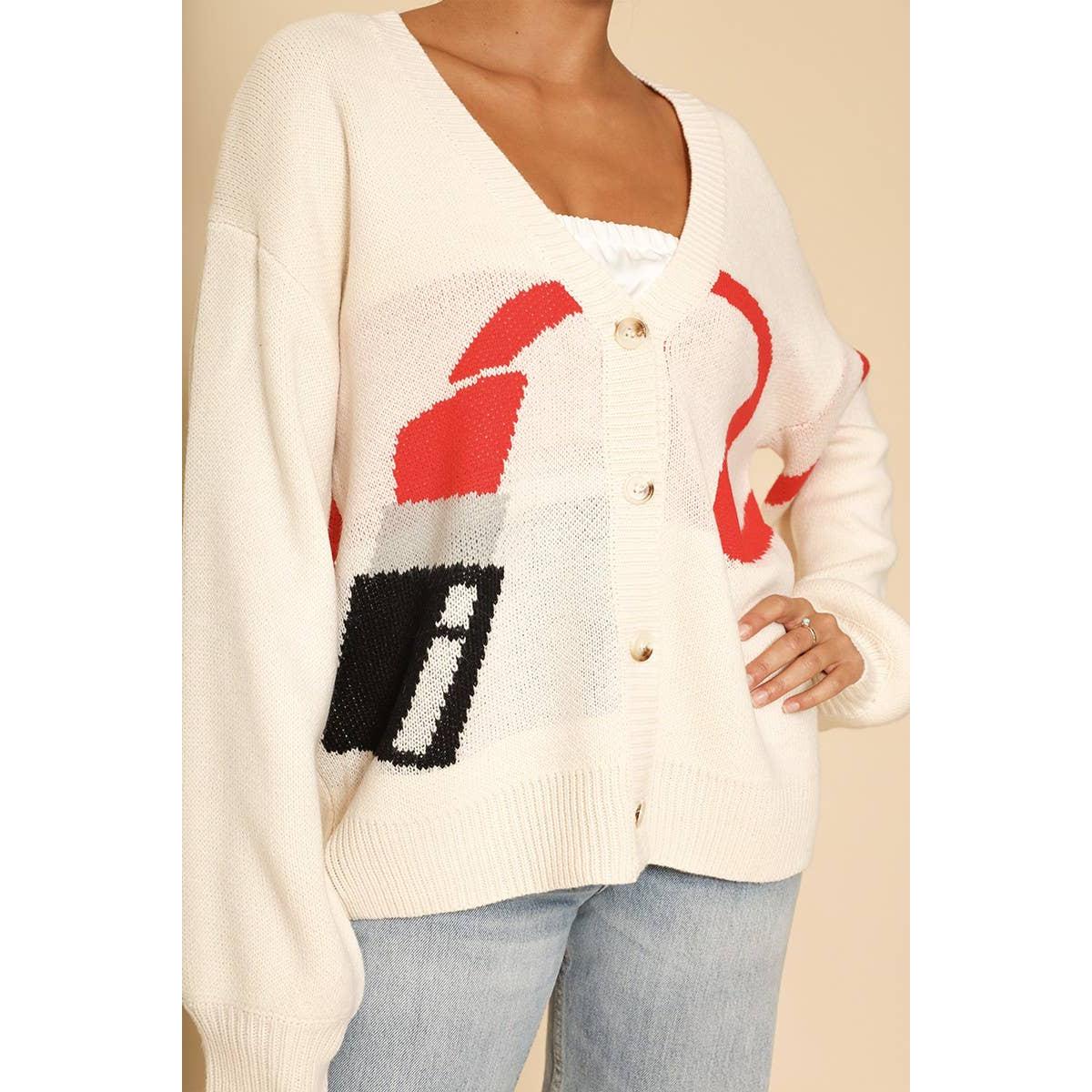 Lipstick Intarsia Cardigan – White Multi | Knit Sweater [Available in S-XL]