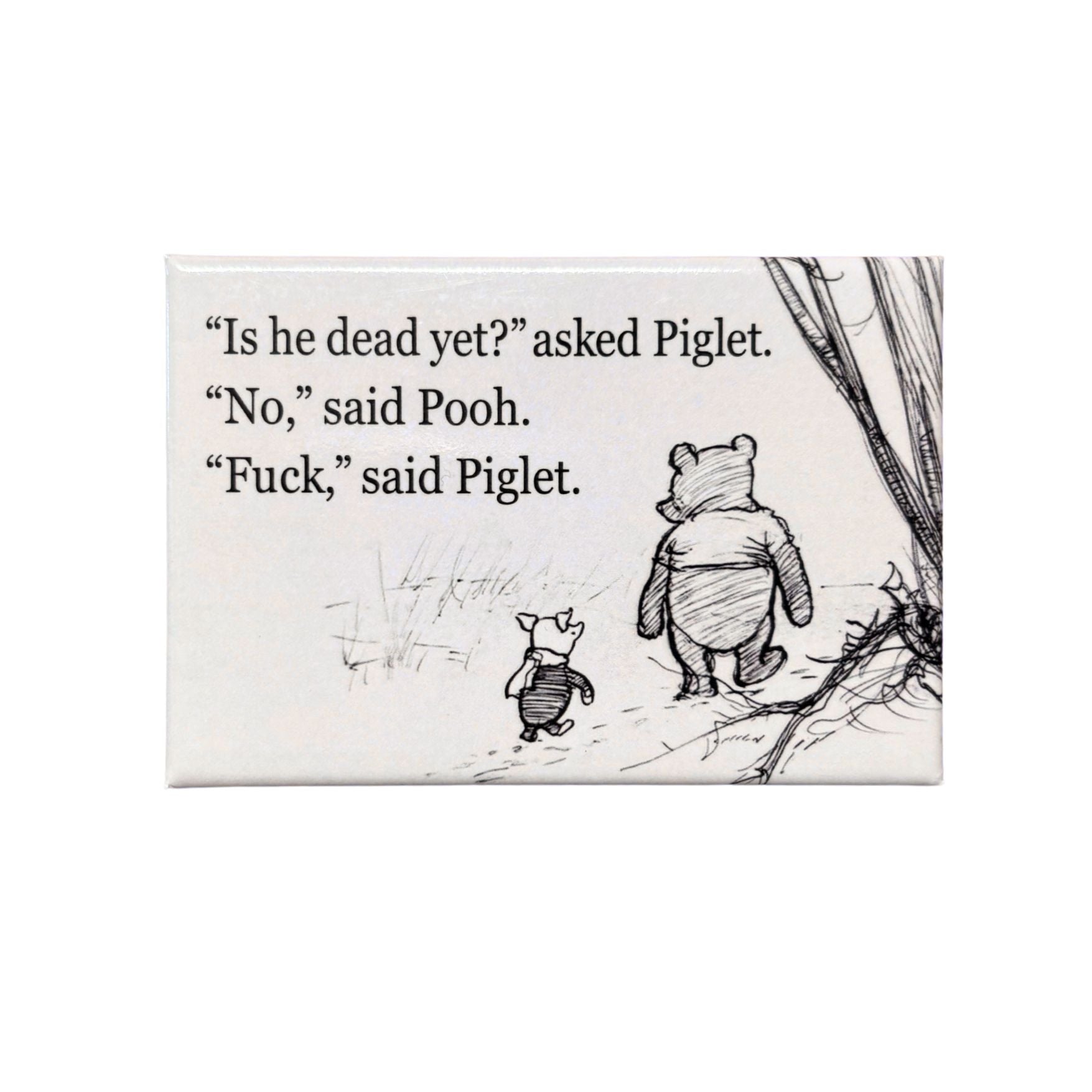 Express your wit and humor with this 'MAGNET: Is he dead yet? Asked Piglet. No, said Pooh. Fuck,'.