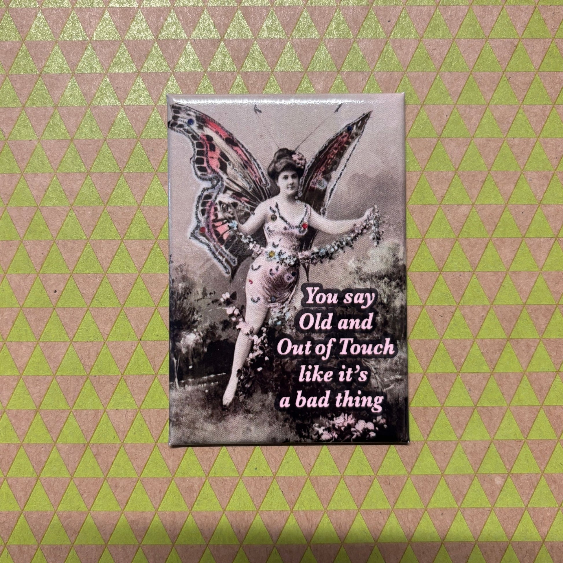 The 'You say old and out of touch like it's a bad thing' magnet is a rectangular magnet with a brutally honest, sarcastic, and hilarious vibe.