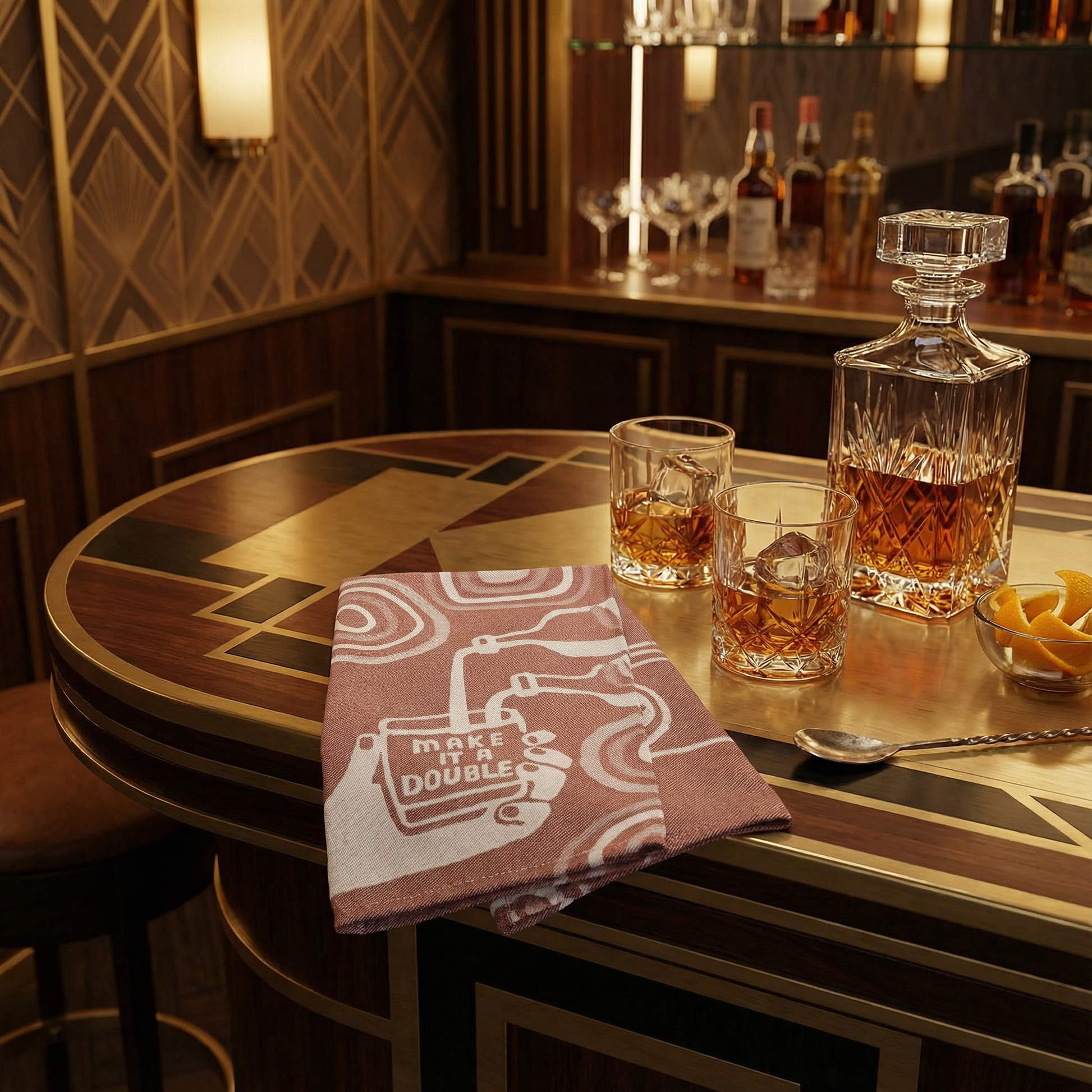 Make It A Double Whiskey Themed Woven Funny Snarky Dish Jacquard Towel | BlueQ at GetBullishLow stock: 9 left