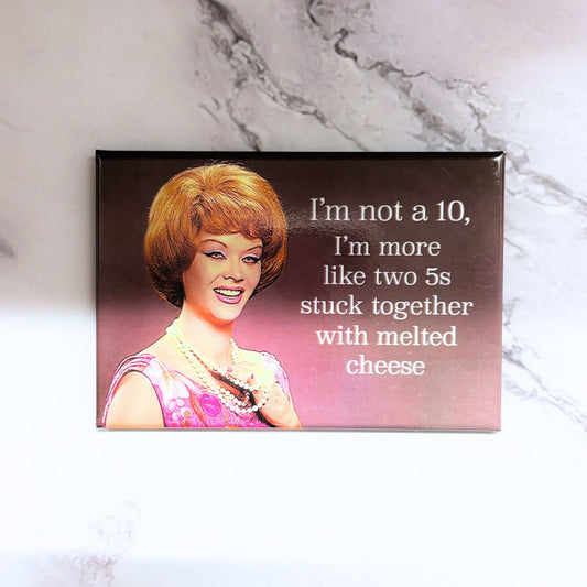 I’m Not a 10, I’m More Like Two 5s Stuck Together With Melted Cheese Magnet | Funny Retro Humor Fridge Magnet