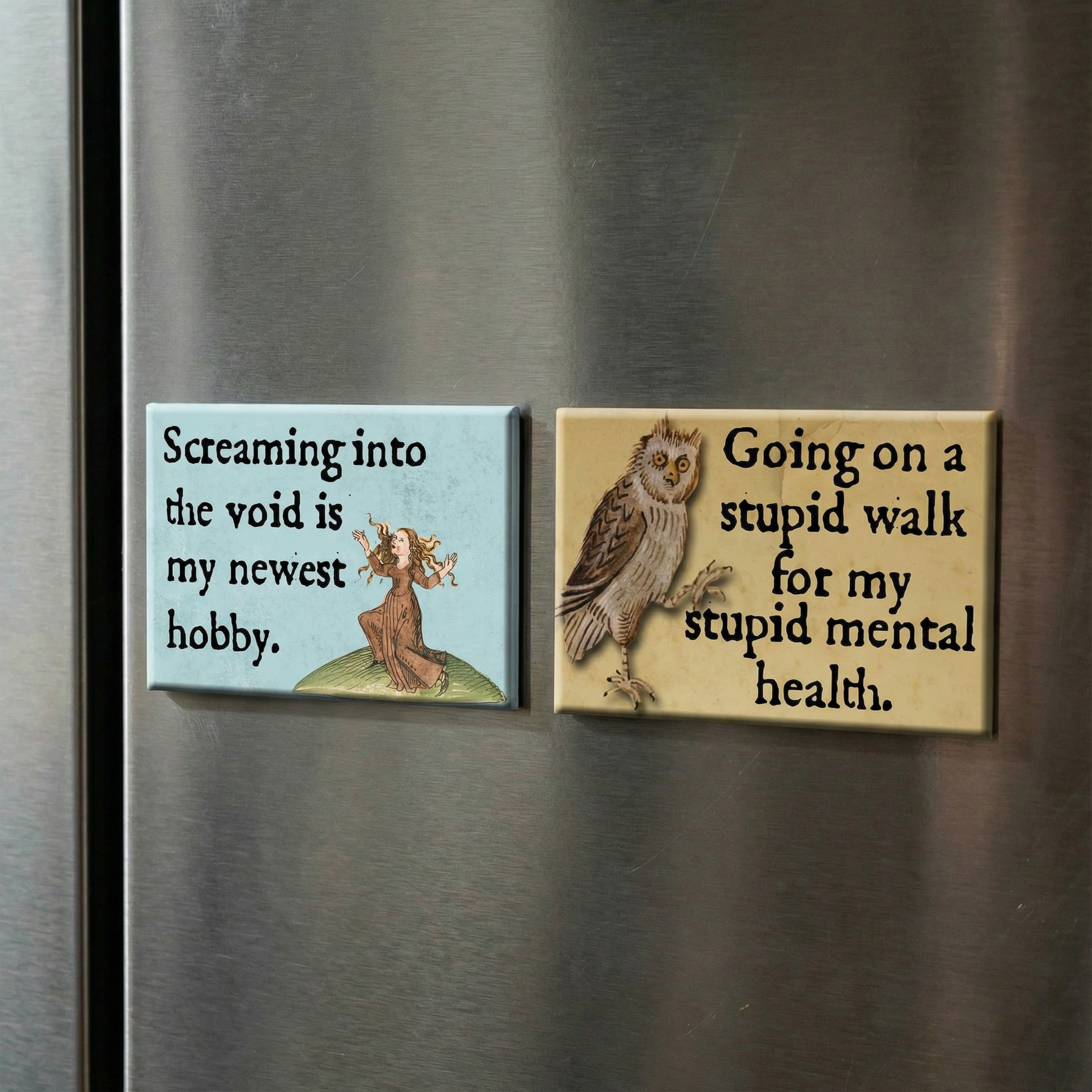 Mental Health Walk Medieval Marginalia Refrigerator Magnet | Funny Self-Care Humor Magnet15 in stock