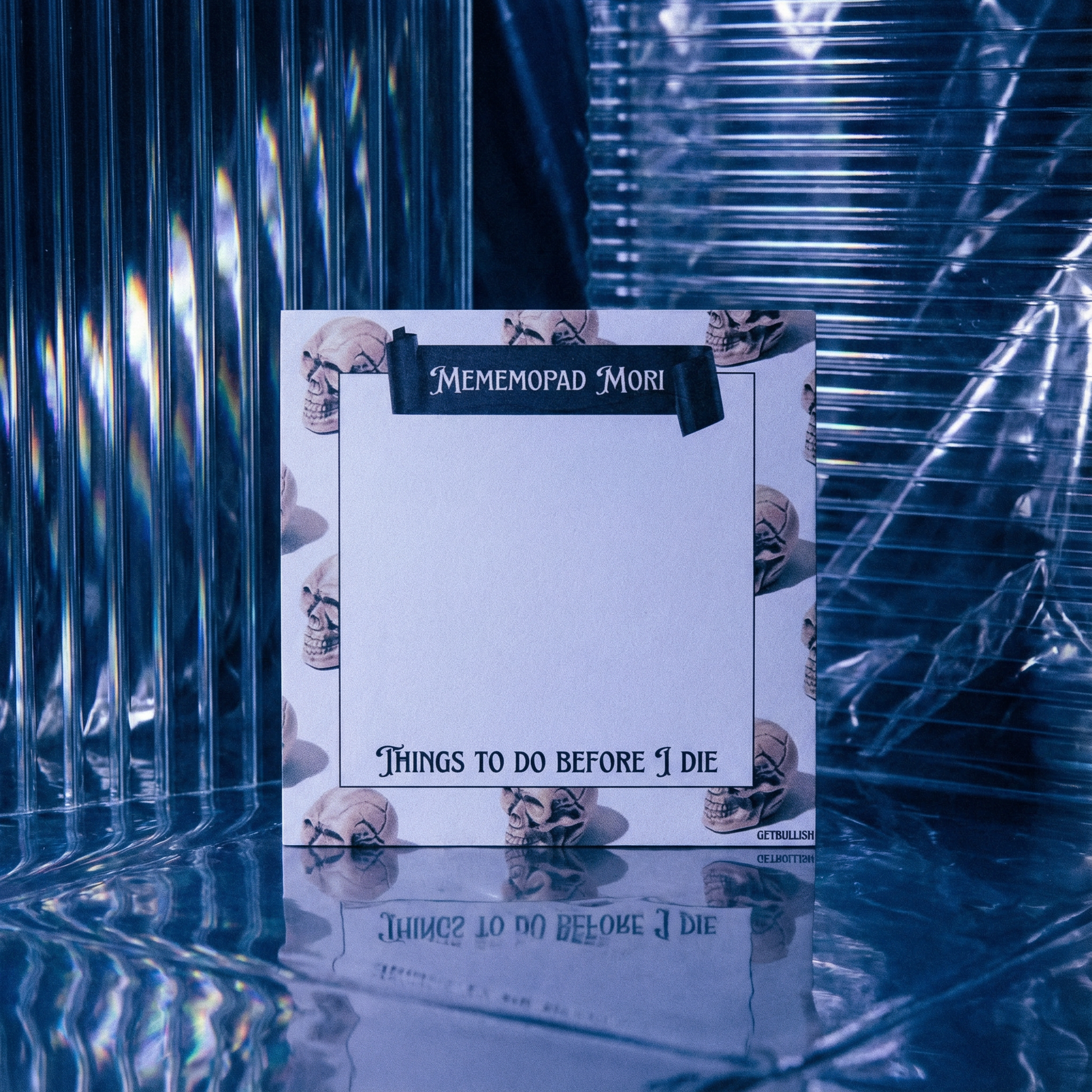 Make your to-do list just a touch more dramatic with the Mememopad Mori Jumbo Sticky Notes. Each 4" x 4" sheet features a playful skull-themed border and the cheeky prompt: “Things to do before I die.” Perfect for jotting down errands, ambitions, reminders, or highly specific existential crises.